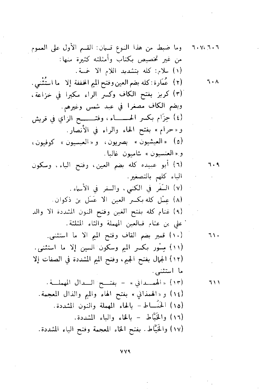 606، 607 وما ضبط من هذا النوع قسمان: القسم الأول على العموم من غير تخصيص بكتاب وأمثلته كثيرة منها: