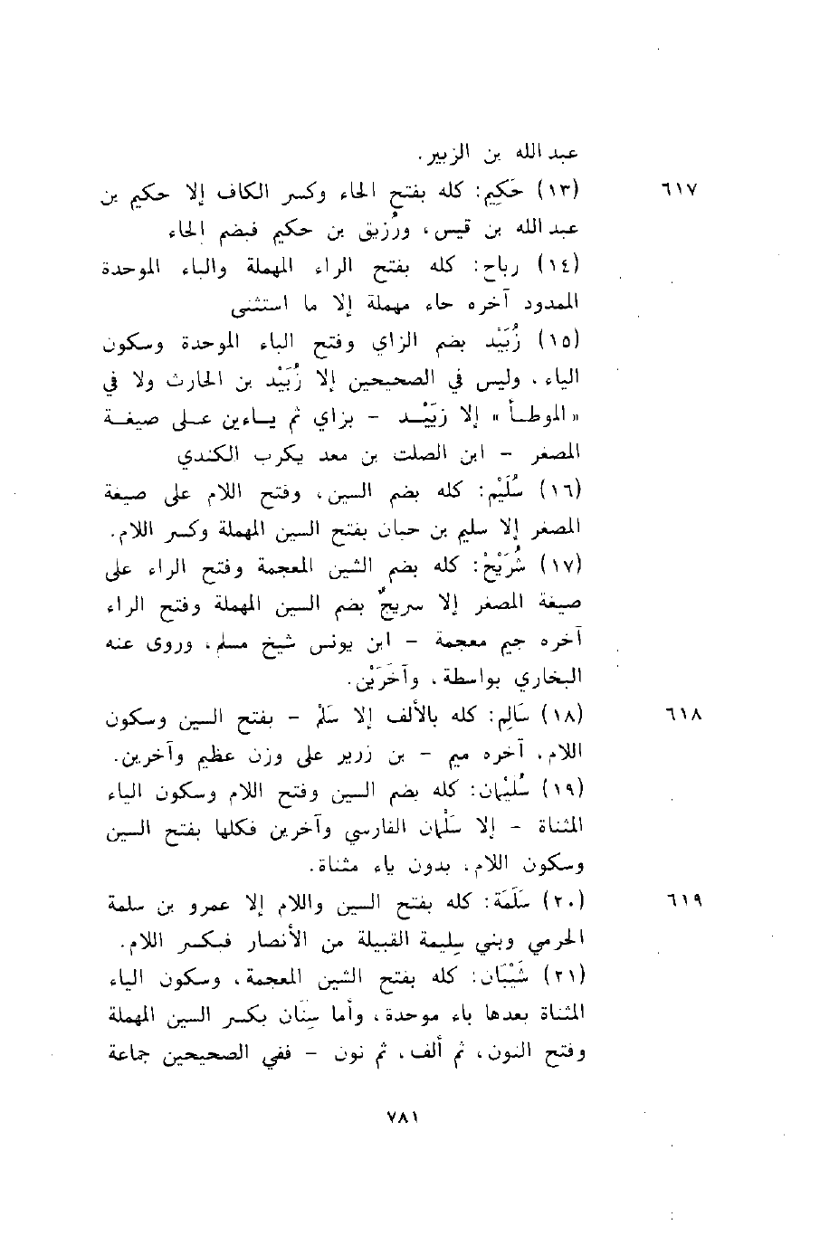 617 13- حكيم: كله بفتح الحاء وكسر الكاف إلا حكيم بن عبد الله بن قيس، ورزيق بن حكيم فبضم الحاء