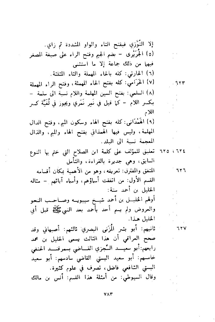 624، 625 تعليق للمؤلف على كلمة ابن الصلاح التي ختم بها النوع السابق، وهي جديرة بالقراءة، والتأمل