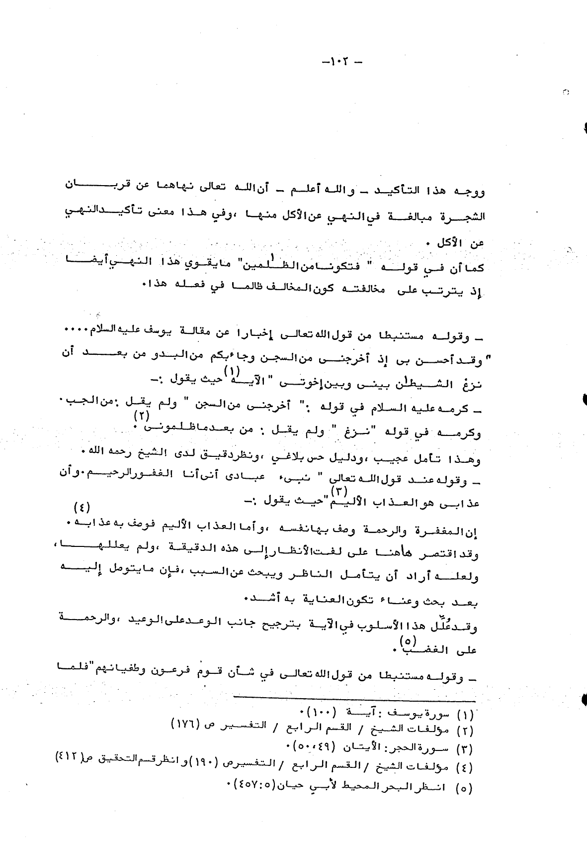 - وقوله عند قول الله تعالى: {نبِّئْ عِبَادِي أَنِّي أَنَا الْغَفُورُ الرَّحِيمُ. وَأَنَّ عَذَابِي هُوَ الْعَذَابُ الْأَلِيمُ} 3 حيث يقول: 4