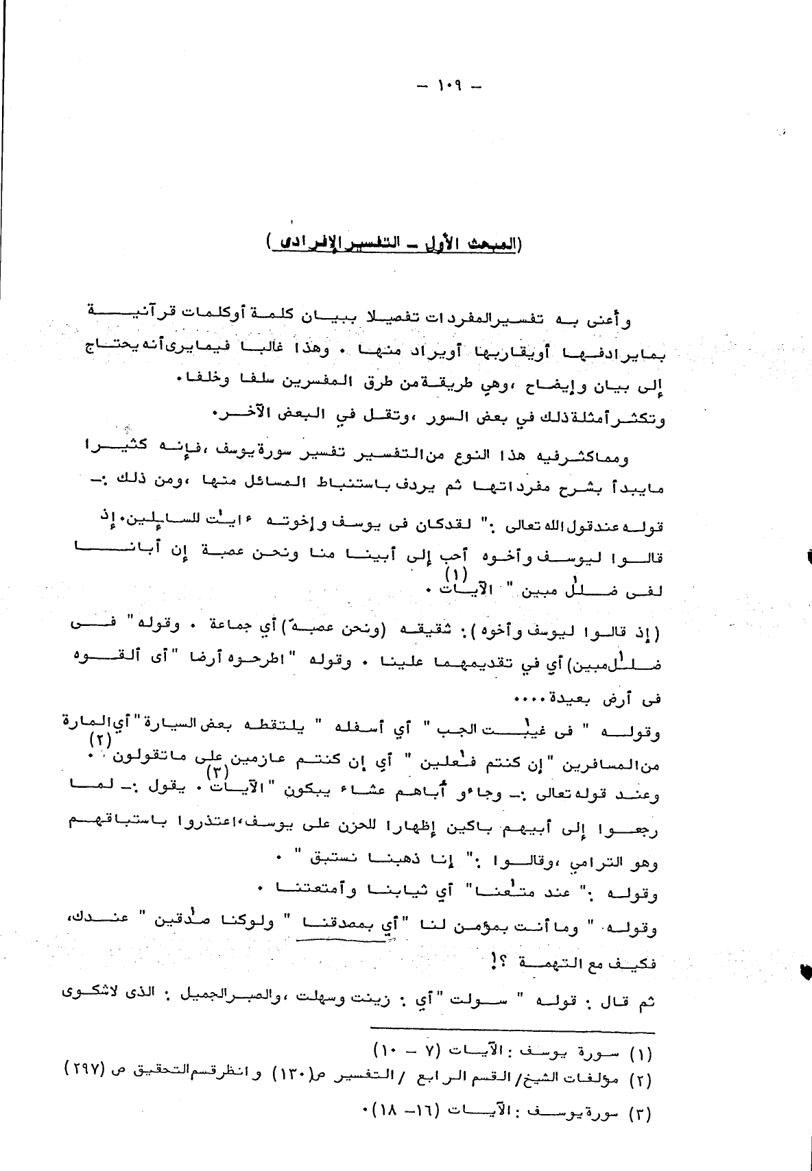 ومما كثر فيه هذا النوع من التفسير تفسير سورة يوسف، فإنه كثيراً ما يبدأ بشرح مفرداتها ثم يردف باستنباط المسائل منها، ومن ذلك: قوله عند قول الله تعالى: {لَقَدْ كَانَ فِي يُوسُفَ وَإِخْوَتِهِ آيَاتٌ لِلسَّائِلِينَ. إِذْ قَالُوا لَيُوسُفُ وَأَخُوهُ أَحَبُّ إِلَى أَبِينَا مِنَّا وَنَحْنُ عُصْبَةٌ إِنَّ أَبَانَا لَفِي ضَلالٍ مُبِينٍ} الآيات1.