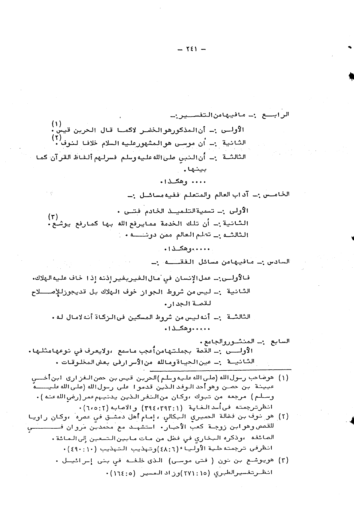 الخامس: آداب العالم والمتعلم ففيه مسائل: