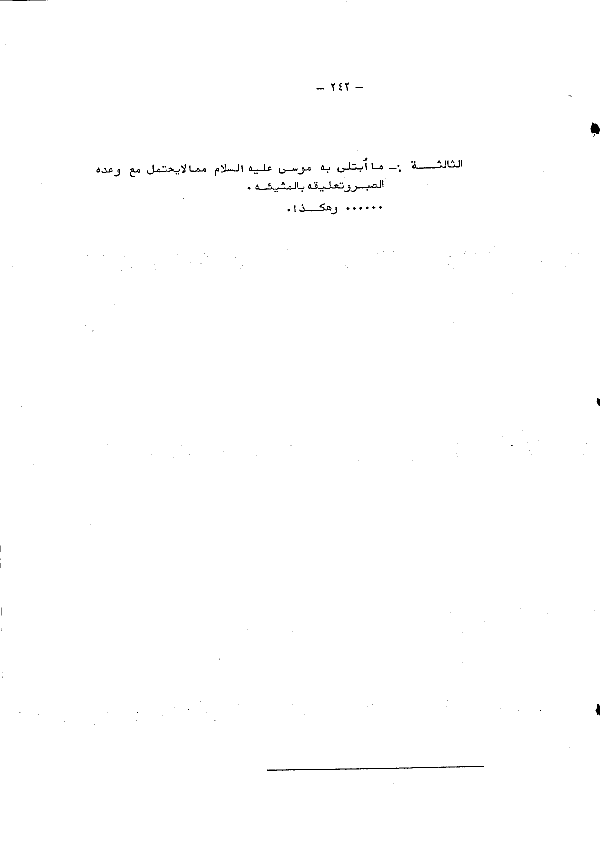 الثالثة: ما أبتلى به موسى عليه السلام مما لا يحتمل مع وعده الصبر وتعليقه بالمشيئة.
