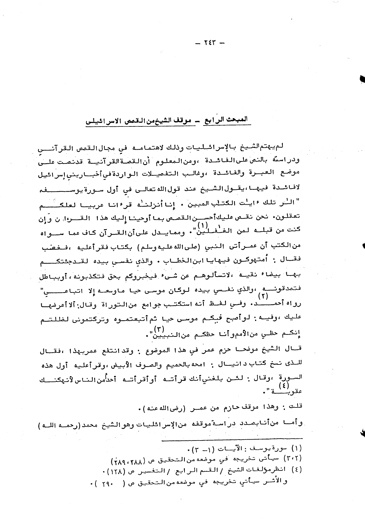 المبحث الرابع: موقف الشيخ من القصص الإسرائيلي