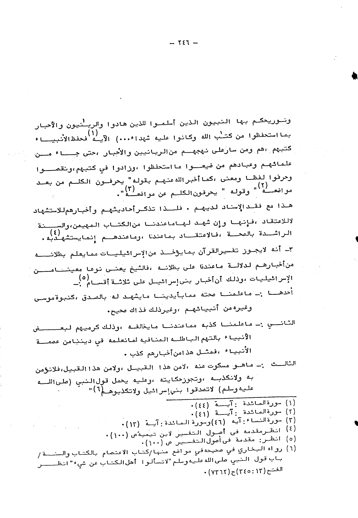 6 رواه البخاري في صحيحه في مواضع منها/ كتاب الاعتصام بالكتاب والسنة/ باب قول النبي صلى الله عليه وسلم: "لا تسألوا أهل الكتاب عن شيء" انظر الفتح "13: 345" ح "7363".