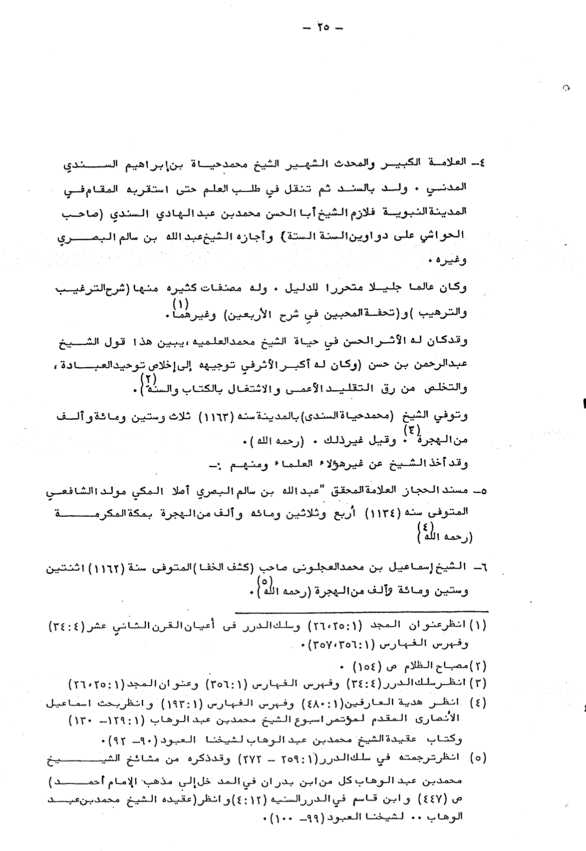 5 انظر ترجمته في سلك الدرر "1: 259- 272" وقد ذكره من مشائخ الشيخ محمد بن عبد الوهاب كل من ابن بدران في المدخل إلى مذهب الإمام أحمد" ص"447" وابن قاسم في الدرر السنية "12: 4" وانظر "عقيدة الشيخ محمد بن عبد الوهاب.. لشيخنا العبود "99- 100".