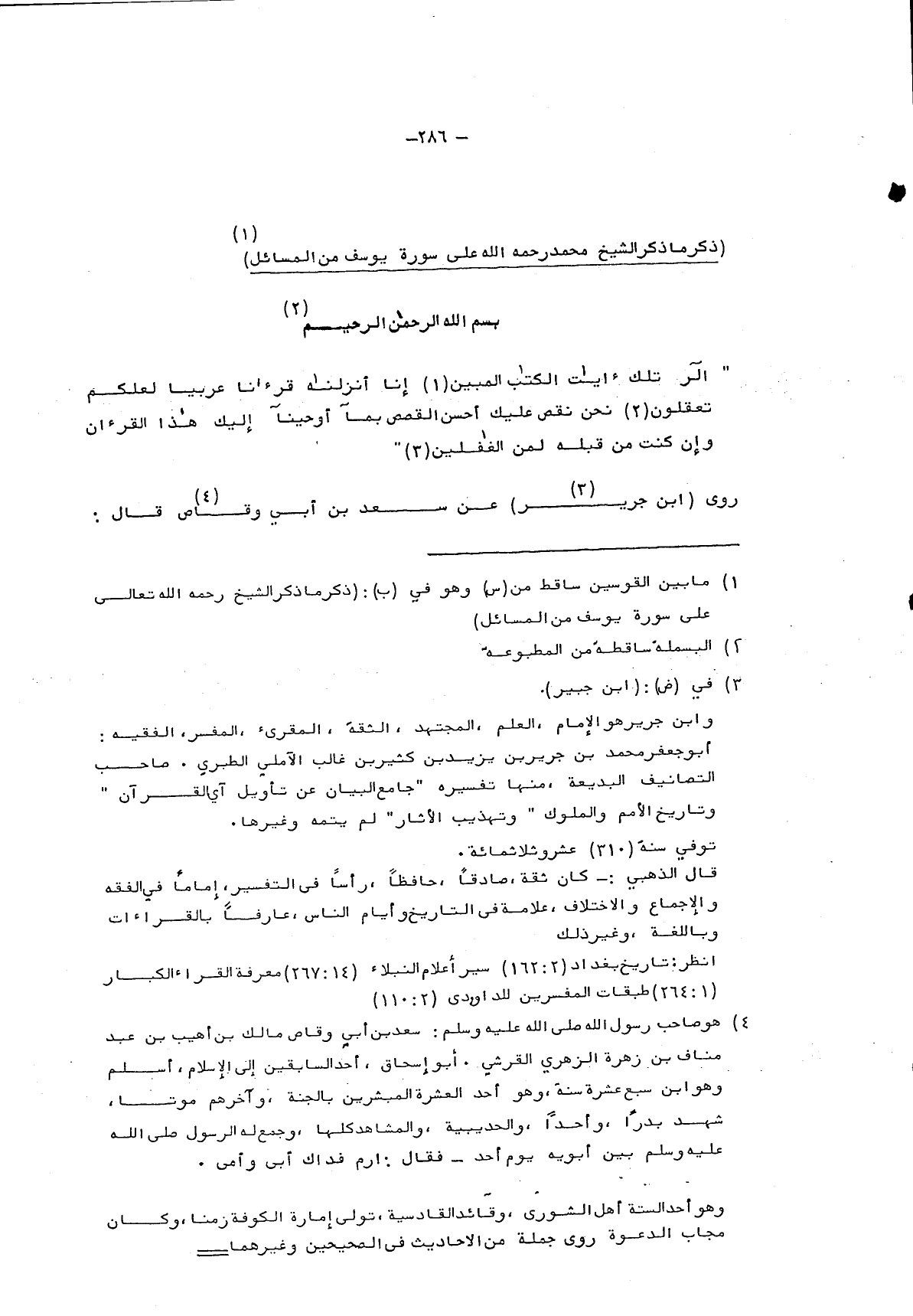 "ذكر ما ذكر الشيخ محمد رحمه الله على سورة يوسف من المسائل" 1
