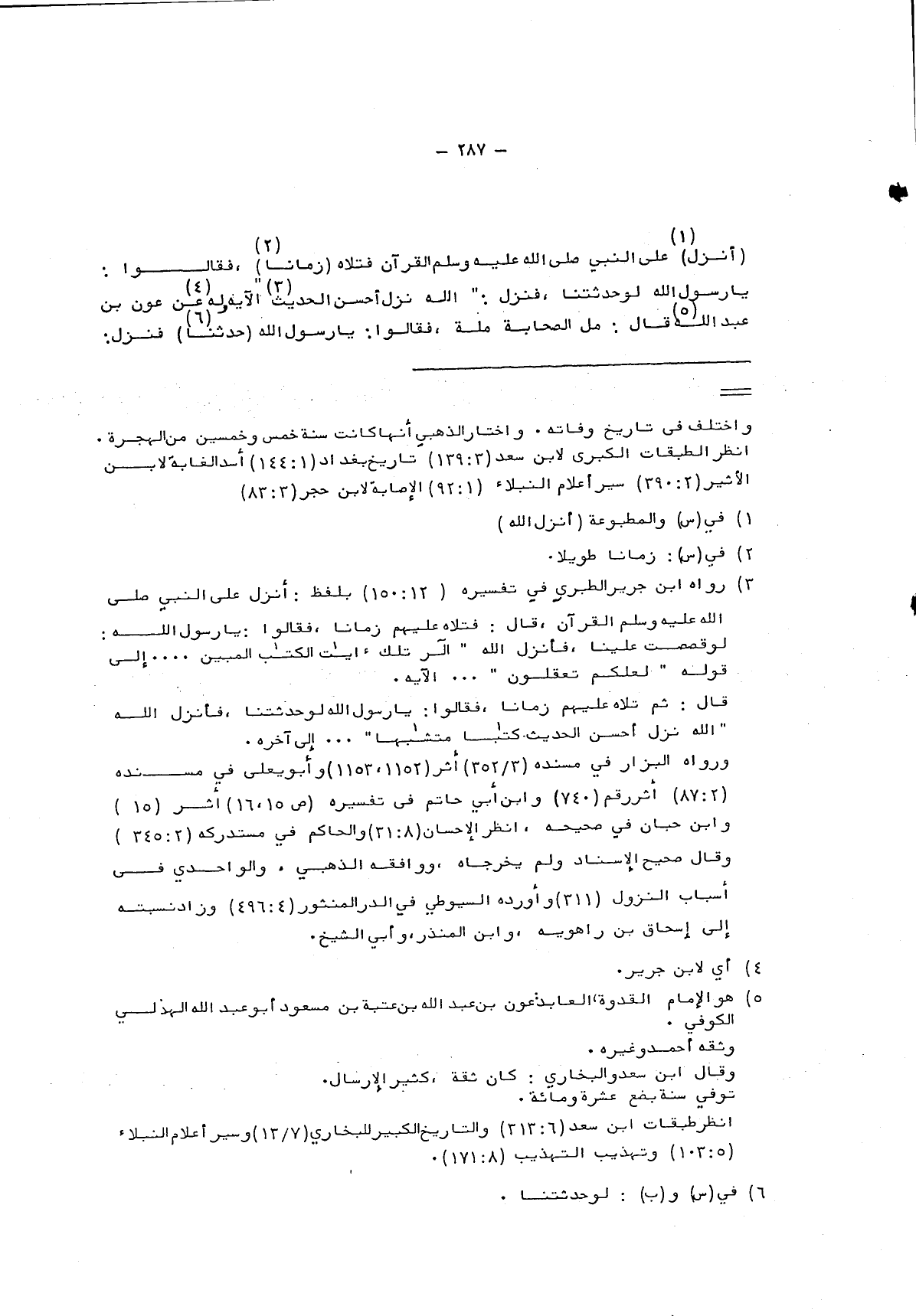 3 رواه ابن جرير الطبري في تفسيره "12: 150" بلفظ: أنزل على النبي صلى الله عليه وسلم القرآن، قال: فتلاه عليهم زمانا، فقالوا: يا رسول الله: لو قصصت علينا، فأنزل الله: {الر تِلْكَ آيَاتُ الْكِتَابِ الْمُبِينِ..} إلى قوله: {لَعَلَّكُمْ تَعْقِلُونَ..} الآية.