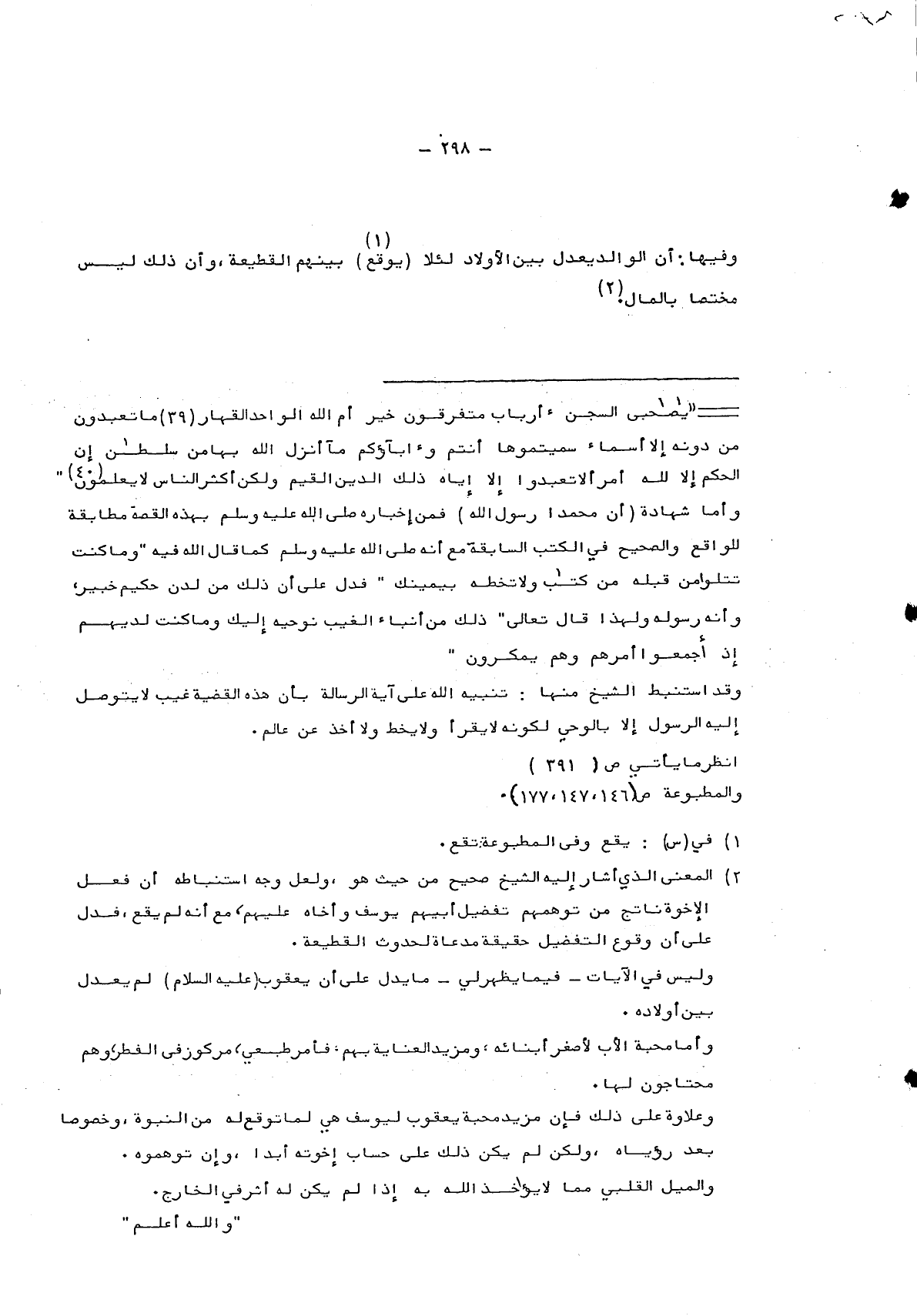 2 المعنى الذي أشار إليه الشيخ صحيح من حيث هو، ولعل وجه استنباطه أن فعل الإخوة ناتج من توهمهم تفضيل أبيهم يوسف وأخاه عليهم، مع أنه لم يقع، فدل على أن وقوع التفضيل حقيقة مدعاة لحدوث القطيعة.