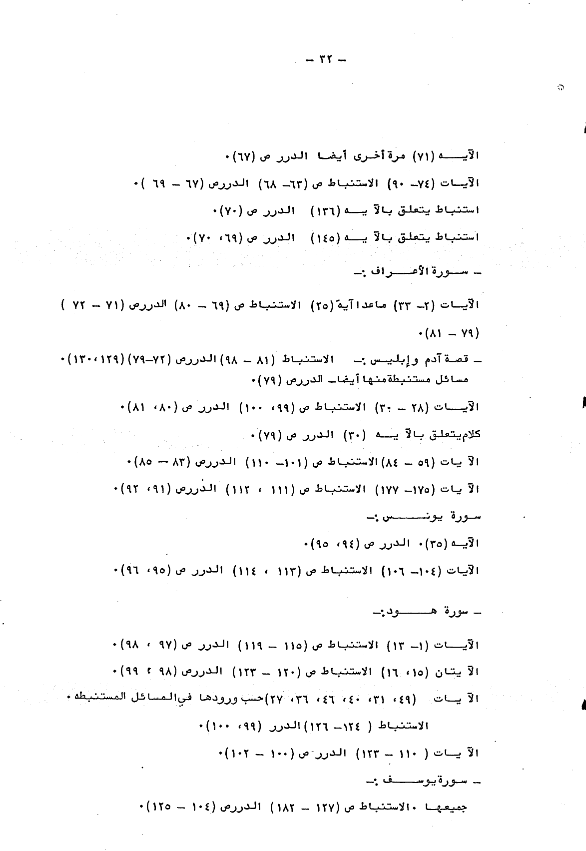 الآيات "2- 33" ما عدا الآية "25" الاستنباط ص "69- 80" الدرر ص "71- 72" "79- 81".