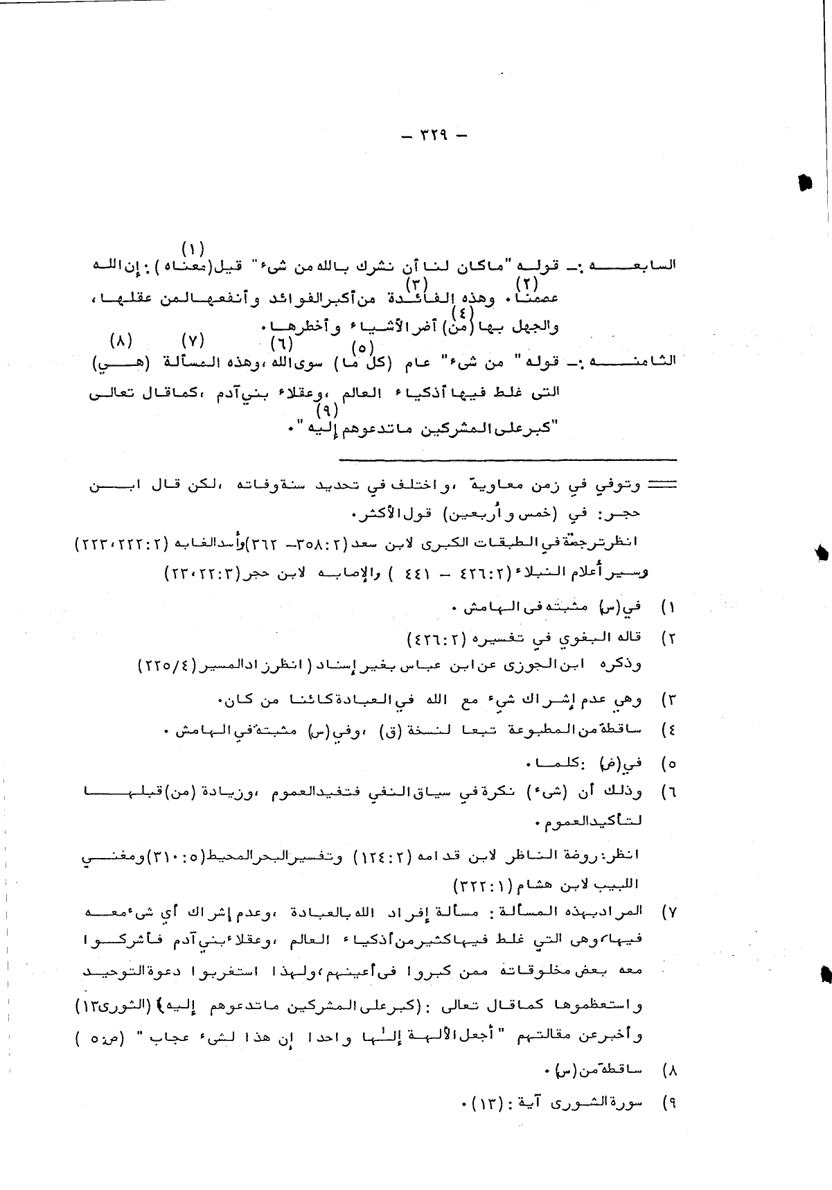 7 المراد بهذه المسألة: مسألة إفراد الله بالعبادة، وعدم إشراك أي شيء معه فيها, وهى التي غلط فيها كثير من أذكياء العالم، وعقلاء بني آدم فأشركوا معه بعض مخلوقاته ممن كبروا في أعينهم، ولهذا استغربوا دعوة التوحيد واستعظموها كما قال تعالى: {كَبُرَ عَلَى الْمُشْرِكِينَ مَا تَدْعُوهُمْ إِلَيْهِ} ، "الشورى 13" وأخبر عن مقالتهم: {أَجَعَلَ الْآلِهَةَ إِلَهاً وَاحِداً إِنَّ هَذَا لَشَيْءٌ عُجَابٌ} "ص:5".