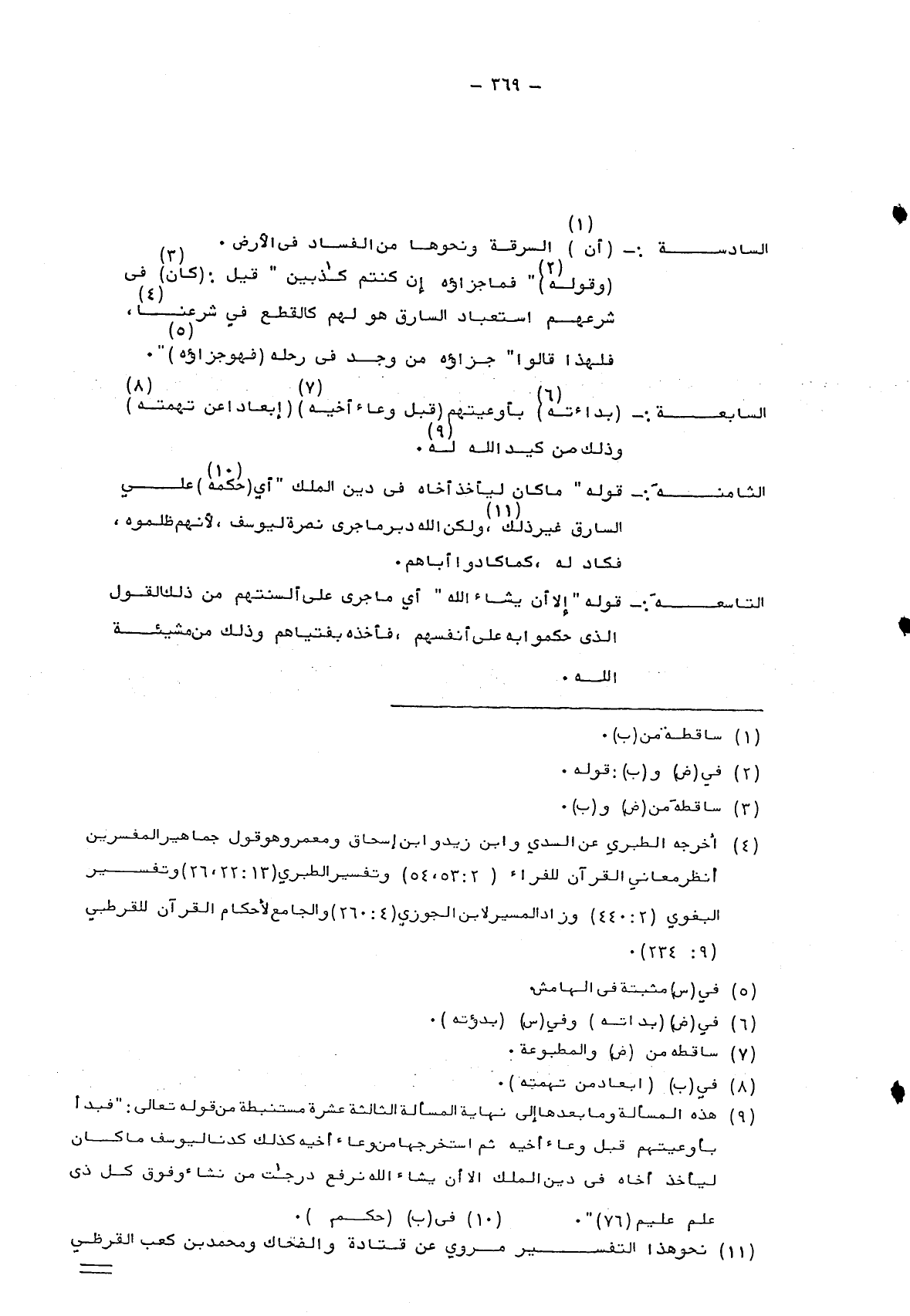 9 هذه المسألة وما بعدها إلى نهاية المسألة الثالثة عشرة مستنبطه من قوله تعالى: {فَبَدَأَ بِأَوْعِيَتِهِمْ قَبْلَ وِعَاءِ أَخِيهِ ثُمَّ اسْتَخْرَجَهَا مِنْ وِعَاءِ أَخِيهِ كَذَلِكَ كِدْنَا لِيُوسُفَ مَا كَانَ لِيَأْخُذَ أَخَاهُ فِي دِينِ الْمَلِكِ إِلَّا أَنْ يَشَاءَ اللَّهُ نَرْفَعُ دَرَجَاتٍ مَنْ نَشَاءُ وَفَوْقَ كُلِّ ذِي عِلْمٍ عَلِيمٌ} .