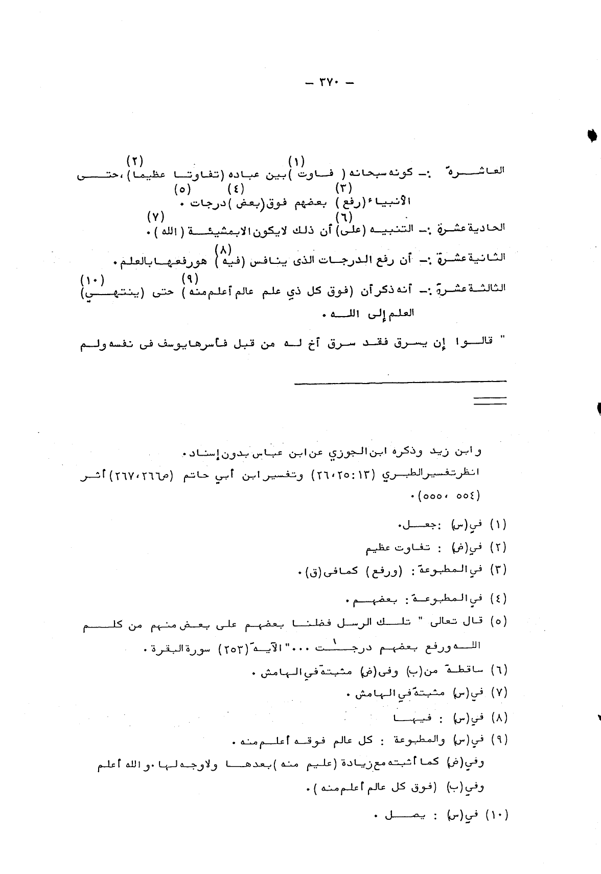 العاشرة: كونه يسبحانه "فاوت"1 بين عباده "تفاوتا عظيما"2، حتى الأنبياء "رفع"3 بعضهم فوق "بعض"4 درجات5.