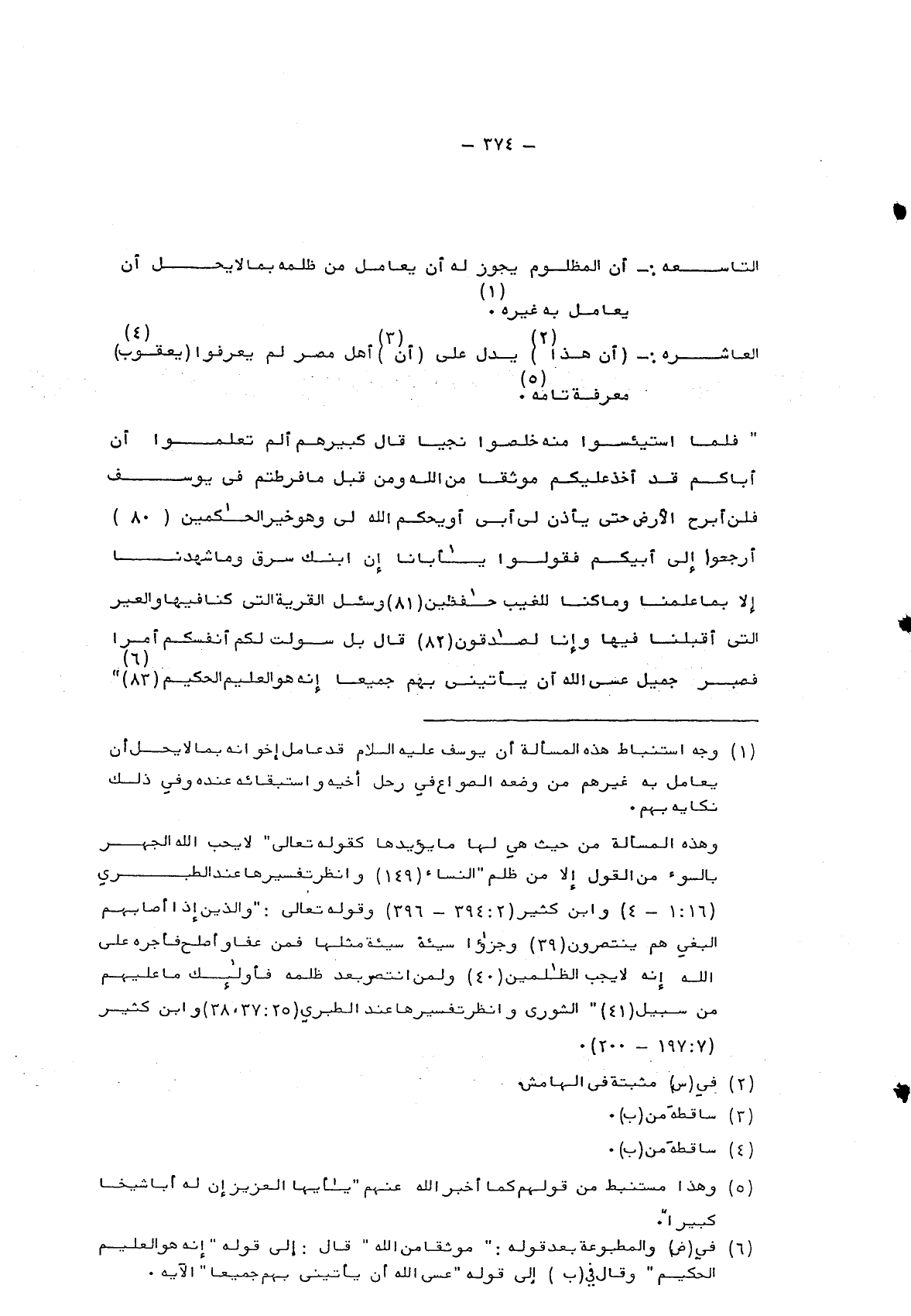 وهذه المسألة من حيث هي لها ما يؤيدها كقوله تعالى: {لا يُحِبُّ اللَّهُ الْجَهْرَ بِالسُّوءِ مِنَ الْقَوْلِ إِلَّا مَنْ ظُلِمَ} النساء "149" وانظر تفسيرها عند الطبري "16: 1- 4" وابن كثير "2: 394- 396" وقوله تعالى: {وَالَّذِينَ إِذَا أَصَابَهُمُ الْبَغْيُ هُمْ يَنْتَصِرُونَ وَجَزَاءُ سَيِّئَةٍ سَيِّئَةٌ مِثْلُهَا فَمَنْ عَفَا وَأَصْلَحَ فَأَجْرُهُ عَلَى اللَّهِ إِنَّهُ لا يُحِبُّ الظَّالِمِينَ وَلَمَنِ انْتَصَرَ بَعْدَ ظُلْمِهِ فَأُولَئِكَ مَا عَلَيْهِمْ مِنْ سَبِيلٍ} الشورى وانظر تفسيرها عند الطبري "25: 37، 38" وابن كثير "197:7- 200".