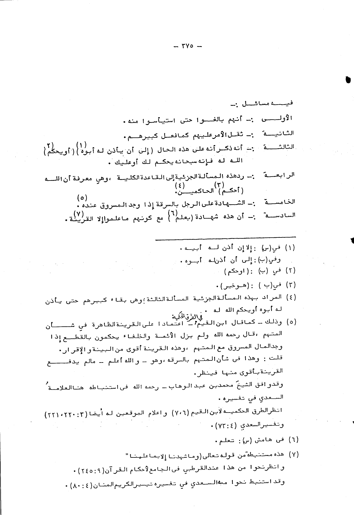 انظر الطرق الحكميه لابن القيم "6،7" واعلام الموقعين له أيضاً "3: 220 221" وتفسير السعدي "4: 73".