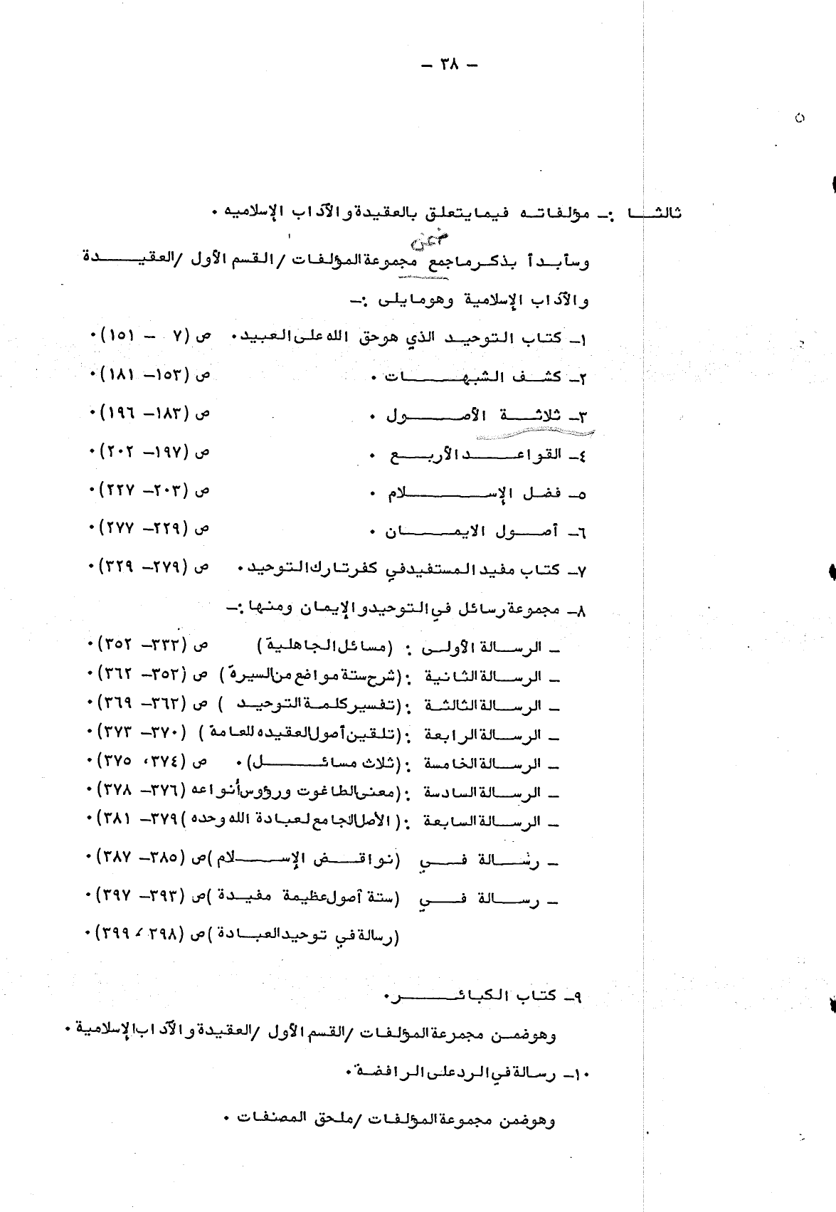 - الرسالة الأولى: "مسائل الجاهلية" ص "332- 352".