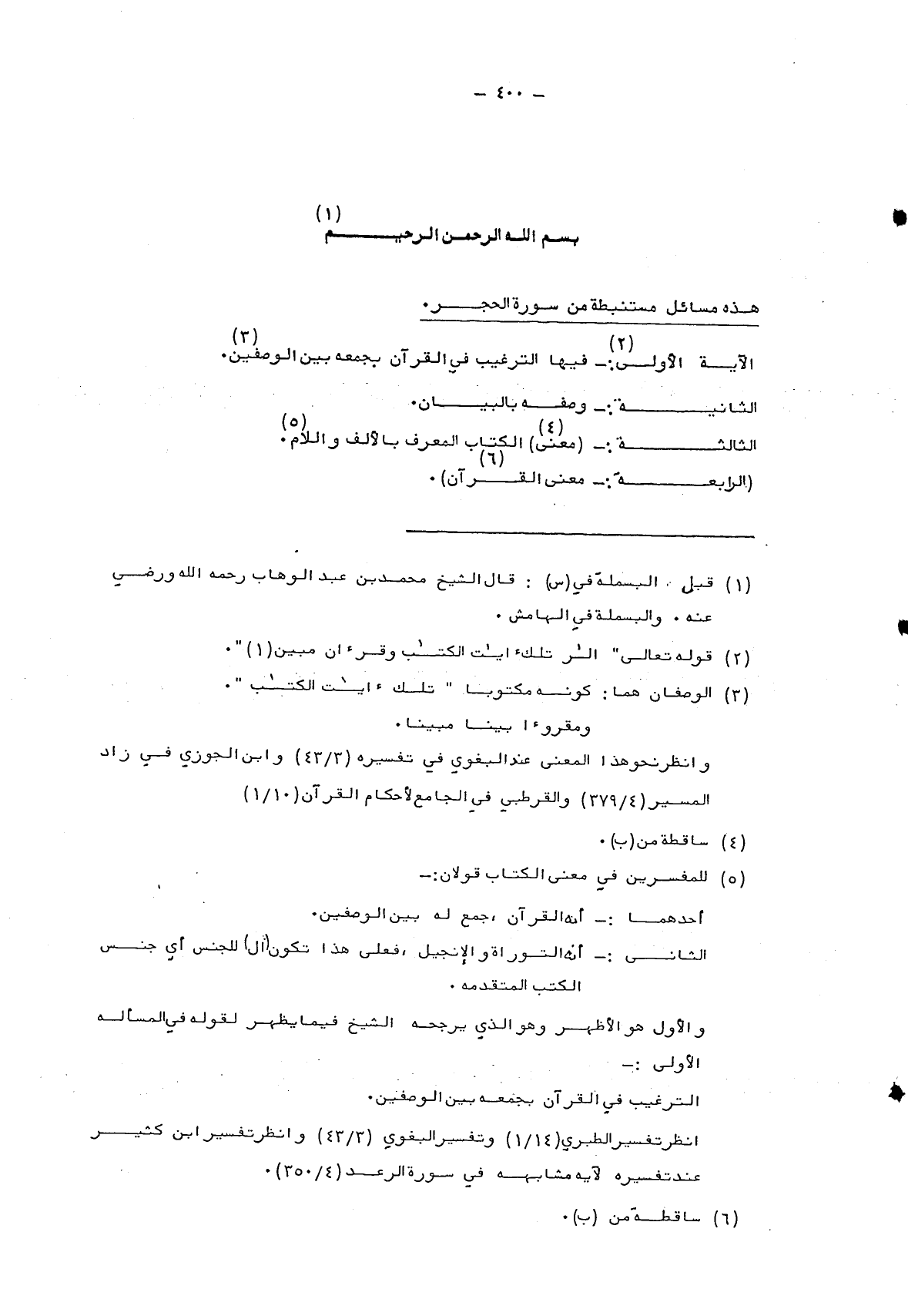 1 قبل البسملة في "س": قال الشيخ محمد بن عبد الوهاب رحمه الله ورضي عنه. والبسملة في الهامش.