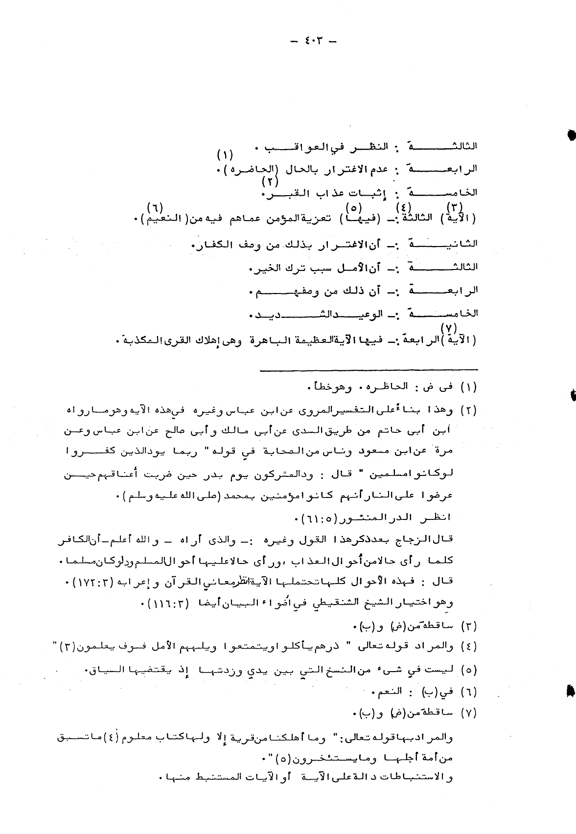 قال الزجاج بعد ذكر هذا القول وغيره:- والذي أراه- والله أعلم- أن الكافر كلما رأى حالاً من أحوال العذاب، ورأى حالا عليها أحوال المسلم ود لو كان مسلماً. قال: فهذه الأحوال كلها تحتملها الآية انظر معاني القرآن وإعرابه "3: 173". وهو اختيار الشيخ الشنقيطي في أضواء البيان أيضا "3: 116".