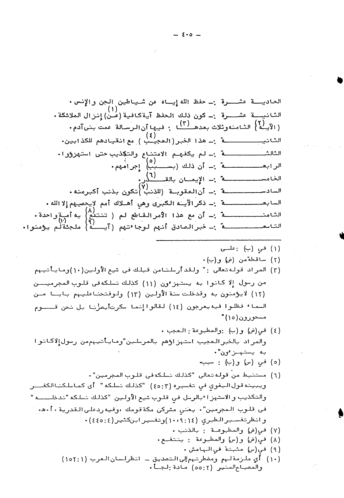 ويبينه قول البغوي في تفسيره "3: 45" {كَذَلِكَ نَسْلُكُهُ} أي كما سلكنا الكفر والتكذيب والاستهزاء بالرسل في قلوب شيع الأولين {كَذَلِكَ نَسْلُكُهُ} ندخله {فِي قُلُوبِ الْمُجْرِمِينَ} . يعني مشركي مكة قومك، وفيه رد على القدرية. أ. هـ. وانظر تفسير الطبري "14: 1059" وتفسير ابن كثير "445:4".