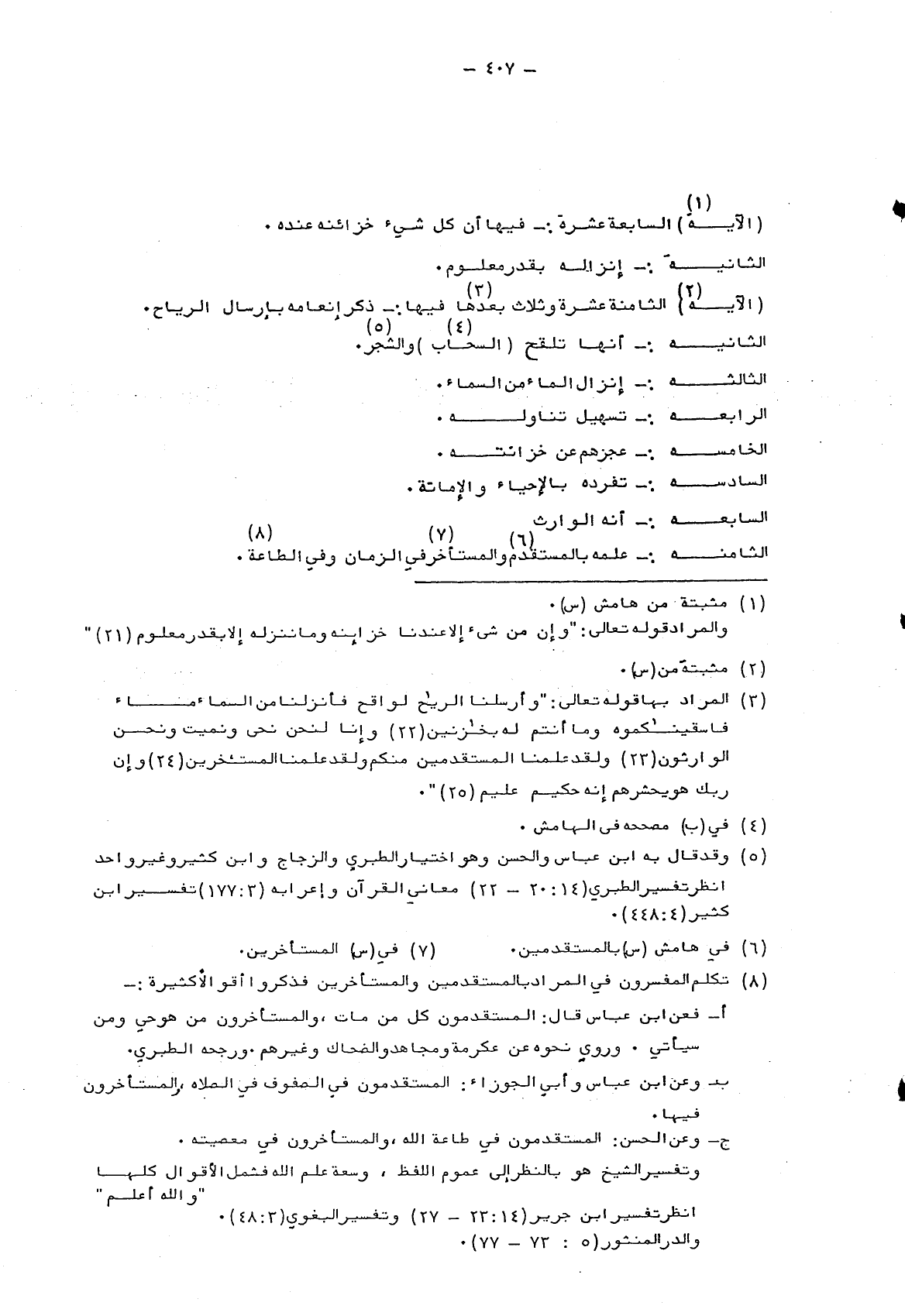3 المراد بها قوله تعالى: {وَأَرْسَلْنَا الرِّيَاحَ لَوَاقِحَ فَأَنْزَلْنَا مِنَ السَّمَاءِ مَاءً فَأَسْقَيْنَاكُمُوهُ وَمَا أَنْتُمْ لَهُ بِخَازِنِينَ وَإِنَّا لَنَحْنُ نُحْيِي وَنُمِيتُ وَنَحْنُ الْوَارِثُونَ وَلَقَدْ عَلِمْنَا الْمُسْتَقْدِمِينَ مِنْكُمْ وَلَقَدْ عَلِمْنَا الْمُسْتَأْخِرِينَ وَإِنَّ رَبَّكَ هُوَ يَحْشُرُهُمْ إِنَّهُ حَكِيمٌ عَلِيمٌ} .