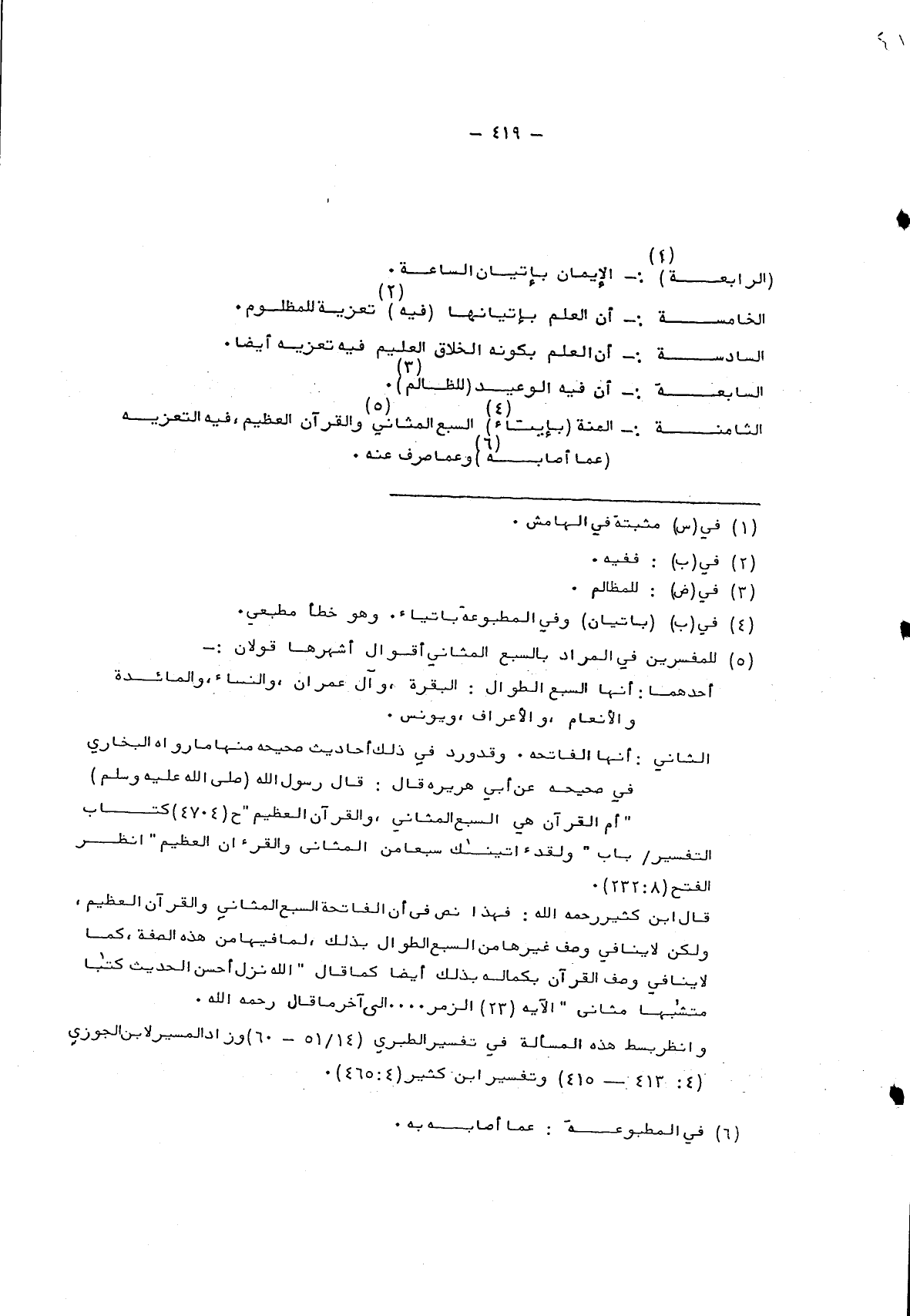 5 للمفسرين في المراد بالسبع المثاني أقوال أشهرها قولان: