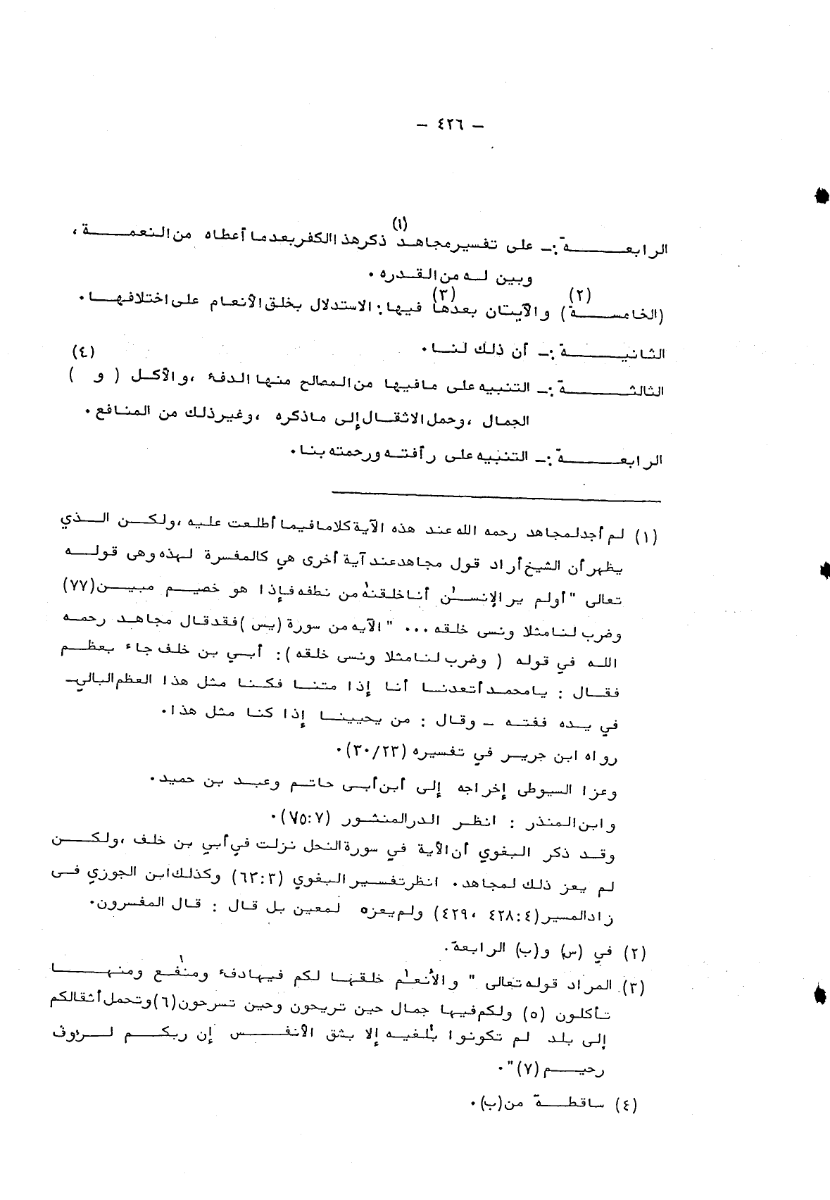 3 المراد قوله: {وَالْأَنْعَامَ خَلَقَهَا لَكُمْ فِيهَا دِفْءٌ وَمَنَافِعُ وَمِنْهَا تَأْكُلُونَ وَلَكُمْ فِيهَا جَمَالٌ حِينَ تُرِيحُونَ وَحِينَ تَسْرَحُونَ وَتَحْمِلُ أَثْقَالَكُمْ إِلَى بَلَدٍ لَمْ تَكُونُوا بَالِغِيهِ إِلَّا بِشِقِّ الْأَنْفُسِ إِنَّ رَبَّكُمْ لَرَؤُوفٌ رَحِيمٌ} .