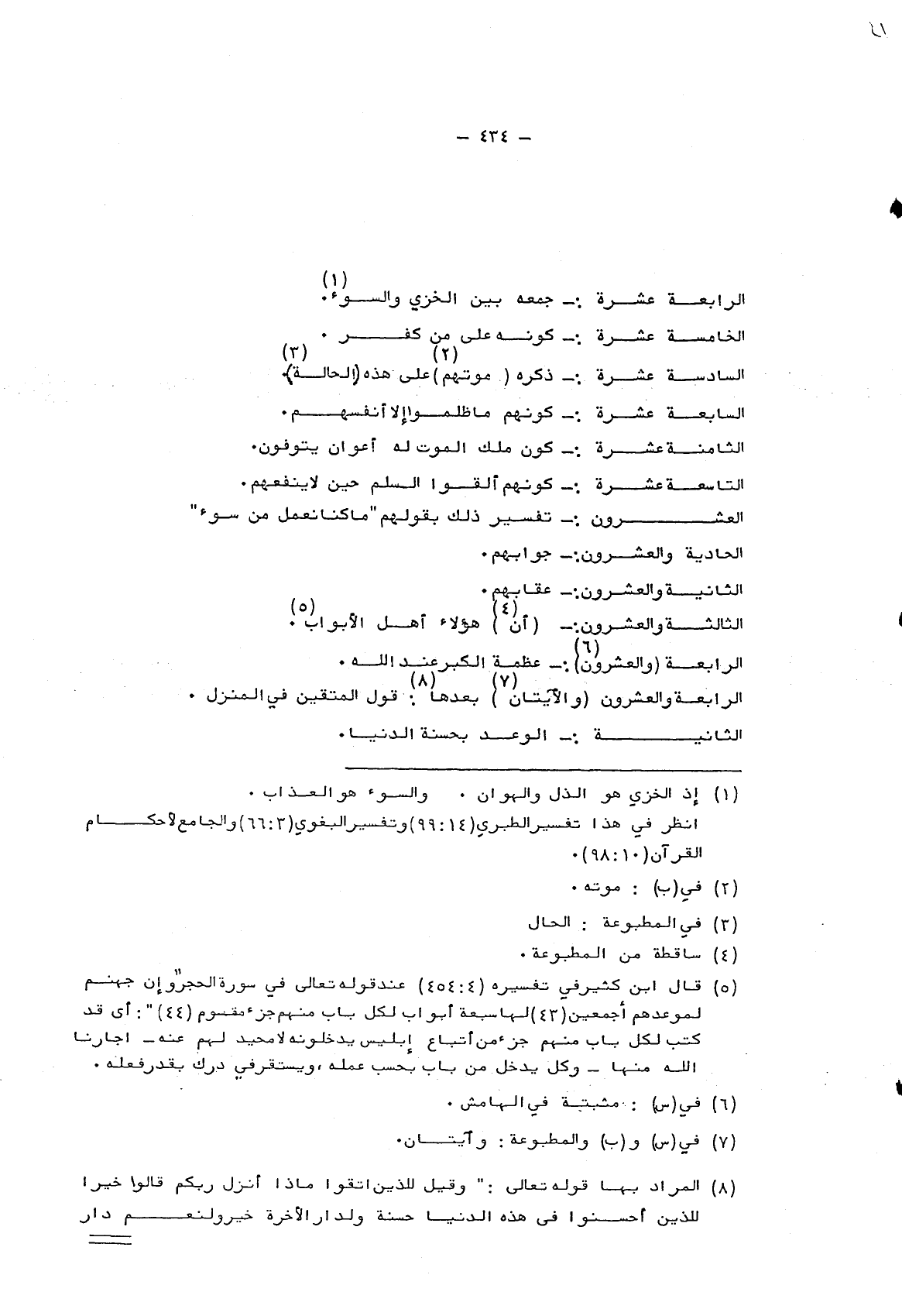 5 قال ابن كثير في تفسيره "4: 454" عند قوله تعالى في سورة الحجر {وَإِنَّ جَهَنَّمَ لَمَوْعِدُهُمْ أَجْمَعِينَ لَهَا سَبْعَةُ أَبْوَابٍ لِكُلِّ بَابٍ مِنْهُمْ جُزْءٌ مَقْسُومٌ} أي قد كتب لكل باب منهم جزء من أتباع إبليس يدخلونه لا محيد لهم عنه- أجارنا الله منها- وكل يدخل من باب بحسب عمله، ويستقر في درك بقدر فعله.
