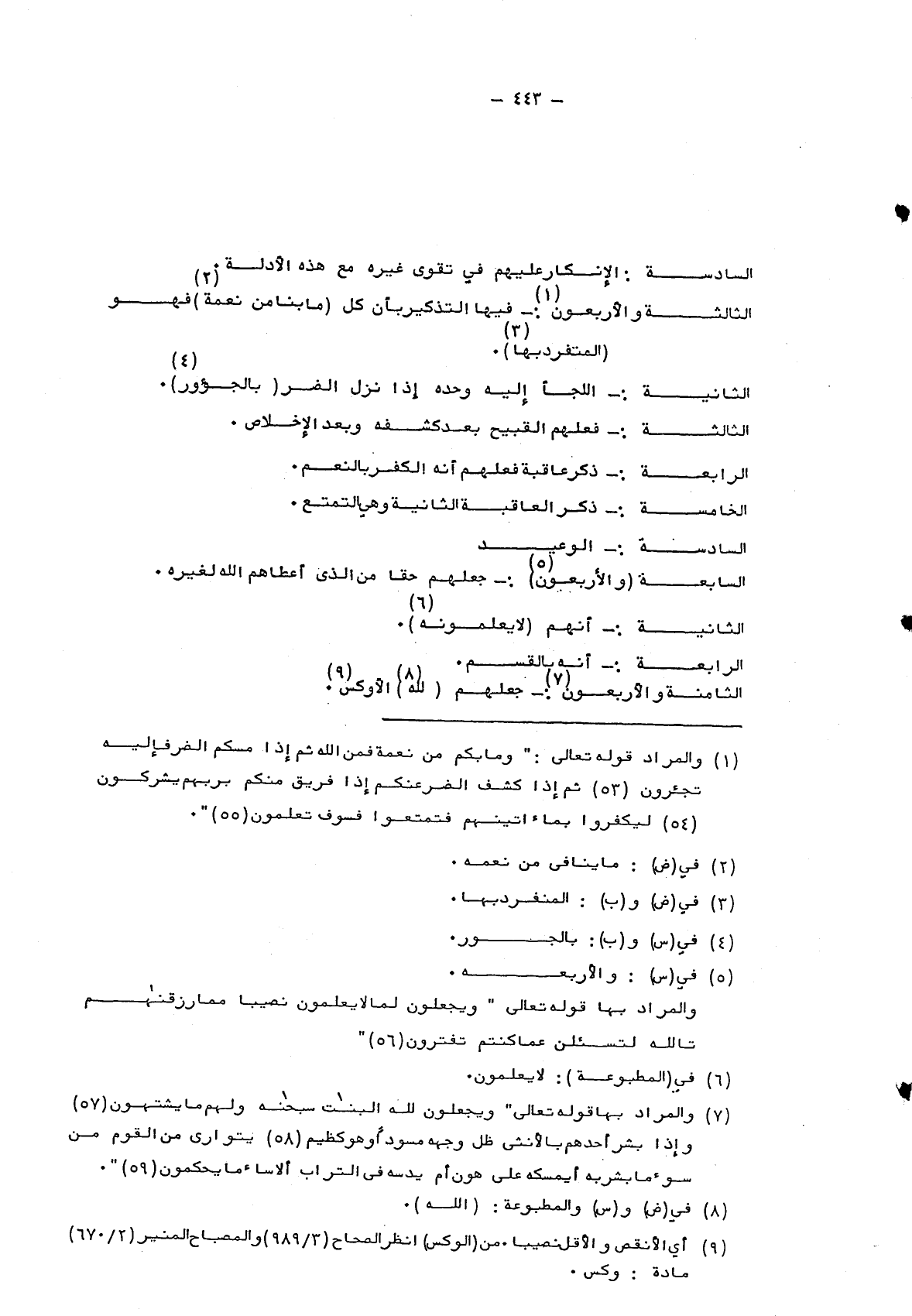 1 والمراد قوله تعالى: {وَمَا بِكُمْ مِنْ نِعْمَةٍ فَمِنَ اللَّهِ ثُمَّ إِذَا مَسَّكُمُ الضُّرُّ فَإِلَيْهِ تَجْأَرُونَ ثُمَّ إِذَا كَشَفَ الضُّرَّ عَنْكُمْ إِذَا فَرِيقٌ مِنْكُمْ بِرَبِّهِمْ يُشْرِكُونَ لِيَكْفُرُوا بِمَا آتَيْنَاهُمْ فَتَمَتَّعُوا فَسَوْفَ تَعْلَمُونَ} .