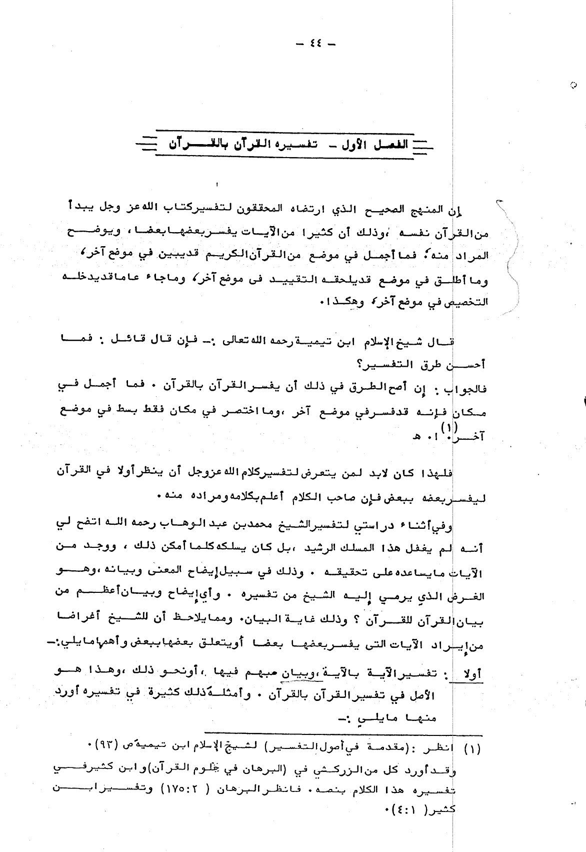 3- وقال عند تفسير قوله تعالى: {الْحَمْدُ لِلَّهِ الَّذِي أَنْزَلَ عَلَى عَبْدِهِ الْكِتَابَ وَلَمْ يَجْعَلْ لَهُ عِوَجَا} 6 ما نصه: