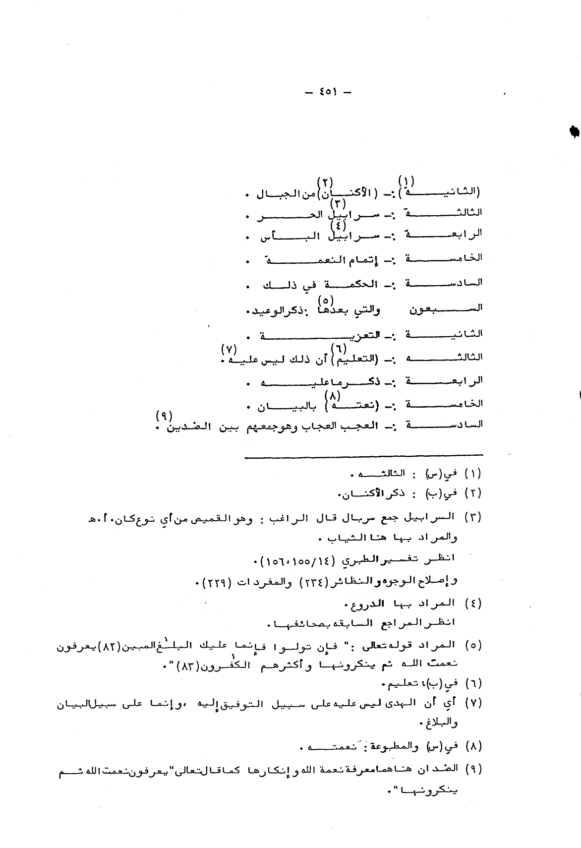 5 المراد قوله تعالى: {فَإِنْ تَوَلَّوْا فَإِنَّمَا عَلَيْكَ الْبَلاغُ الْمُبِينُ يَعْرِفُونَ نِعْمَتَ اللَّهِ ثُمَّ يُنْكِرُونَهَا وَأَكْثَرُهُمُ الْكَافِرُونَ} .