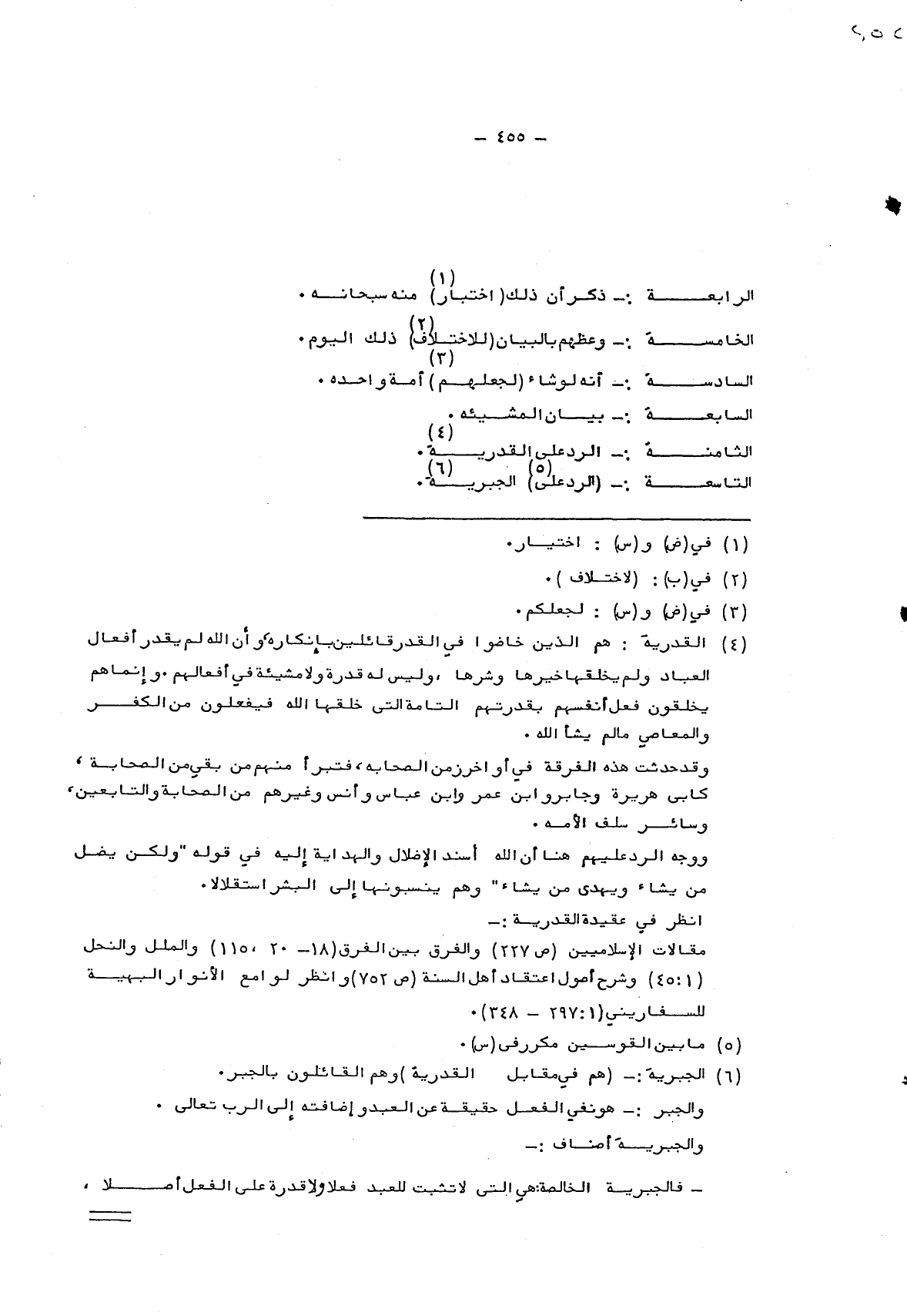 6 الجبرية:- "هم في مقابل القدرية" وهم القائلون بالجبر.