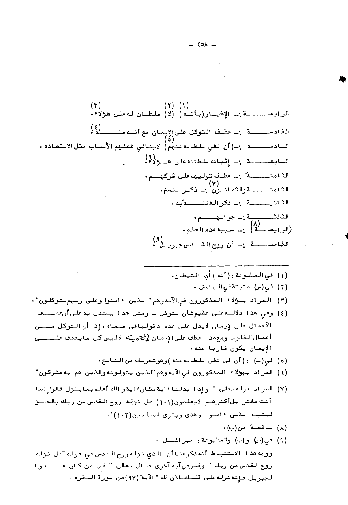 7 المراد قوله تعالى: {وَإِذَا بَدَّلْنَا آيَةً مَكَانَ آيَةٍ وَاللَّهُ أَعْلَمُ بِمَا يُنَزِّلُ قَالُوا إِنَّمَا أَنْتَ مُفْتَرٍ بَلْ أَكْثَرُهُمْ لا يَعْلَمُونَ قُلْ نَزَّلَهُ رُوحُ الْقُدُسِ مِنْ رَبِّكَ بِالْحَقِّ لِيُثَبِّتَ الَّذِينَ آمَنُوا وَهُدىً وَبُشْرَى لِلْمُسْلِمِينَ} .