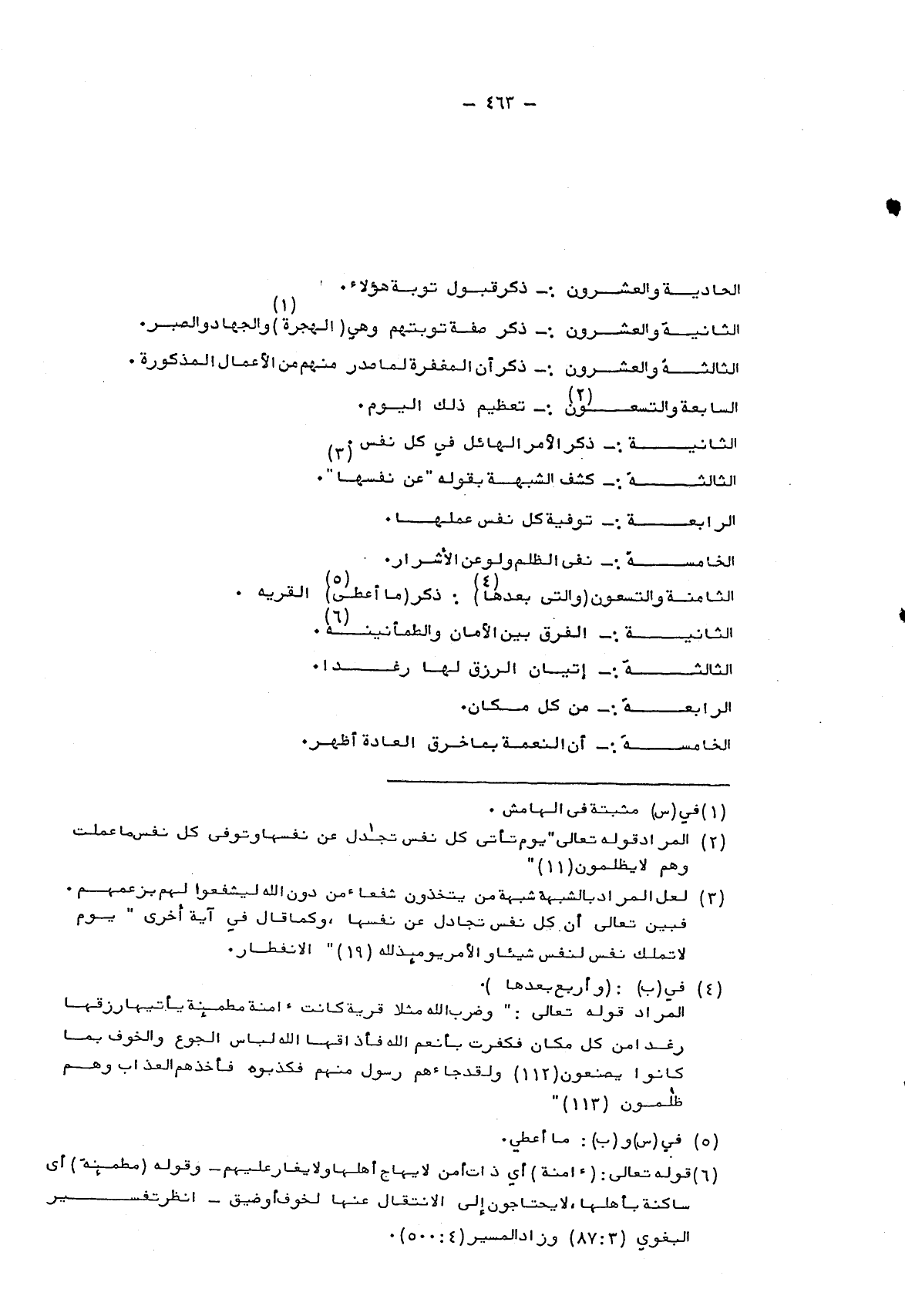 2 المراد قوله تعالى: {يَوْمَ تَأْتِي كُلُّ نَفْسٍ تُجَادِلُ عَنْ نَفْسِهَا وَتُوَفَّى كُلُّ نَفْسٍ مَا عَمِلَتْ وَهُمْ لا يُظْلَمُونَ} .