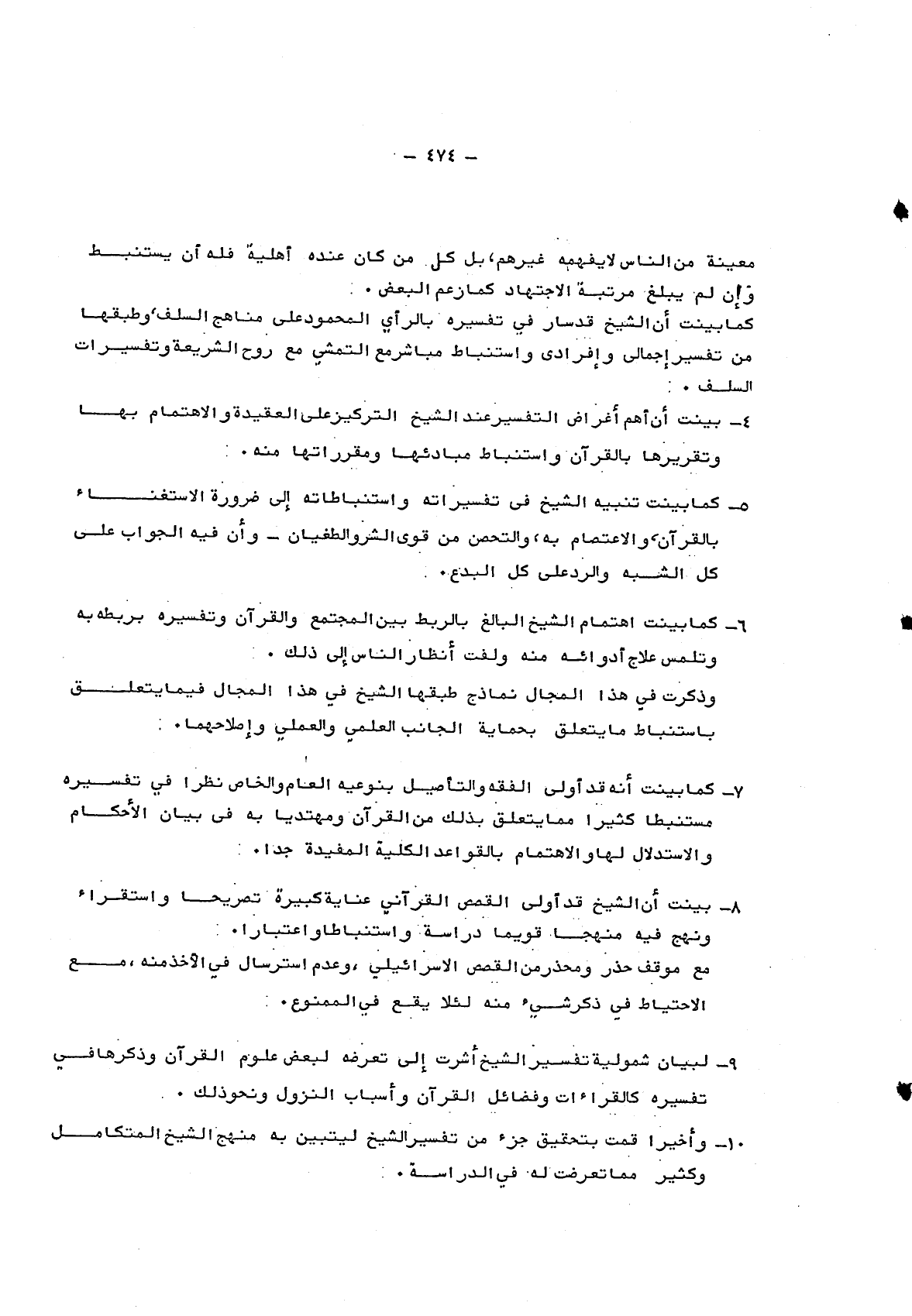 8- بينت أن الشيخ قد أولى القصص القرآني عناية كبيرة تصريحاً واستقراء ونهج فيه منهجاً قويماً دراسة واستنباطا واعتباراً.
