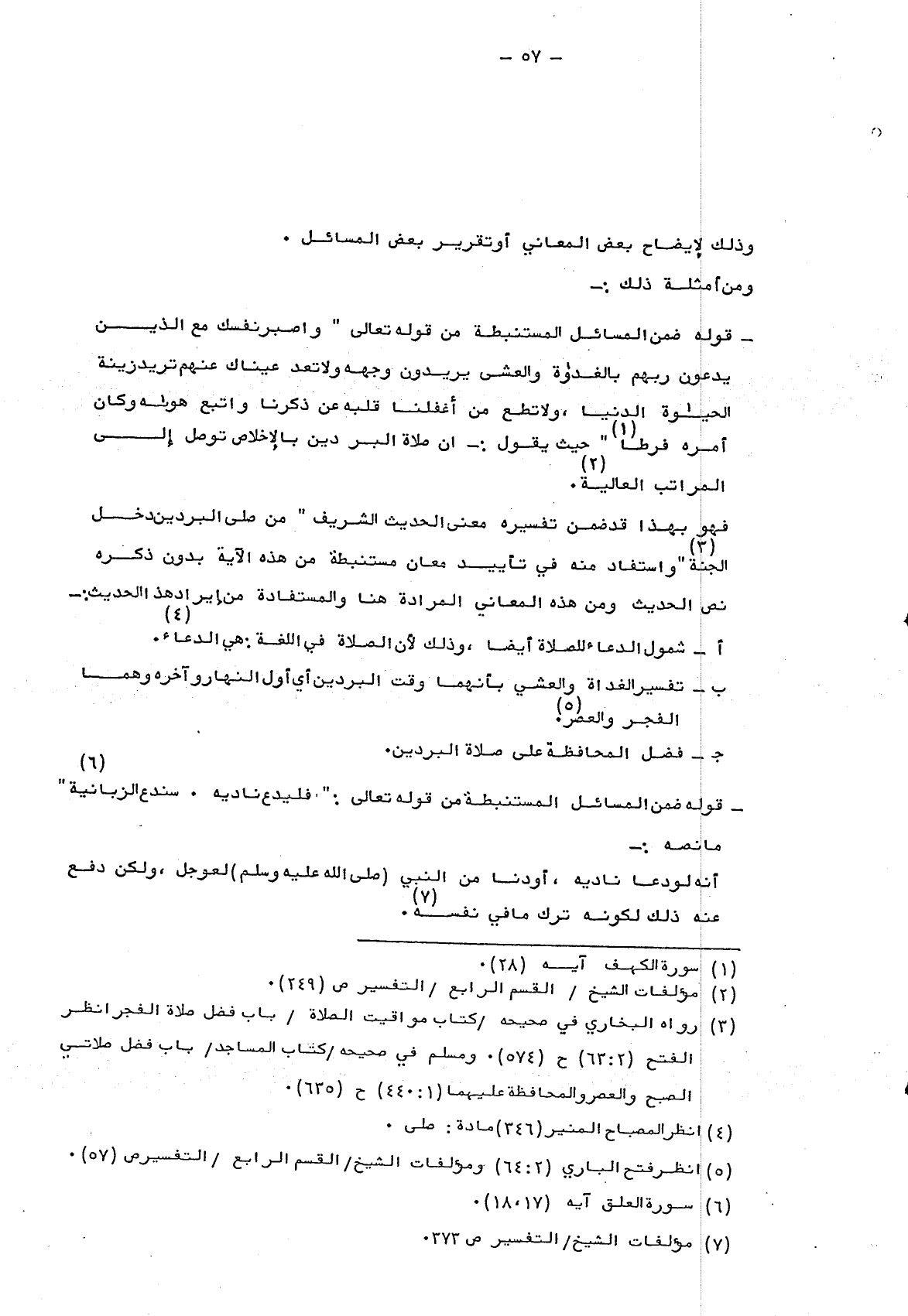 فهو بهذا قد ضمن تفسيره معنى الحديث الشريف "من صلى البردين دخل الجنة" 3، واستفاد منه في تأييد معان مستنبطة من هذه الآية بدون ذكره نص الحديث ومن هذه المعاني المرادة هنا والمستفادة من إيراد هذا الحديث: