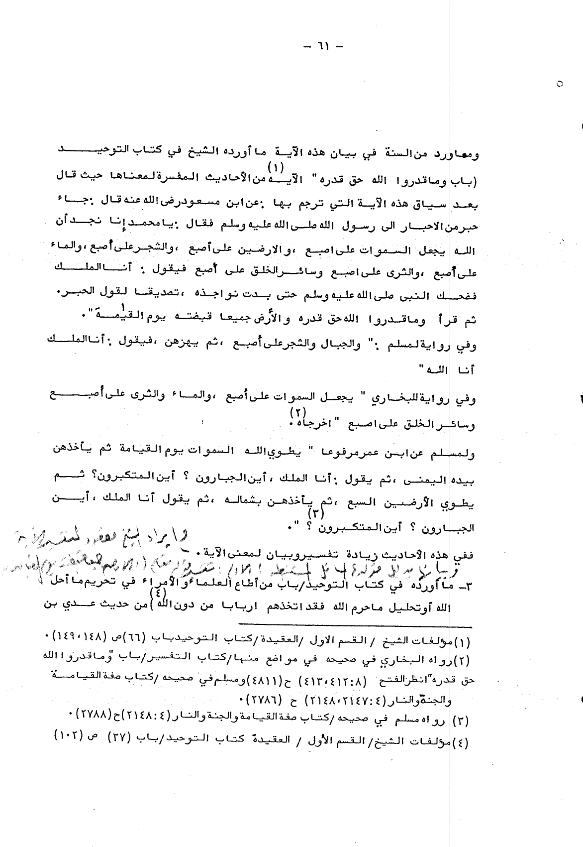 1 مؤلفات الشيخ/ القسم الأول/العقيدة/ كتاب التوحيد باب "66" ص "148، 149".