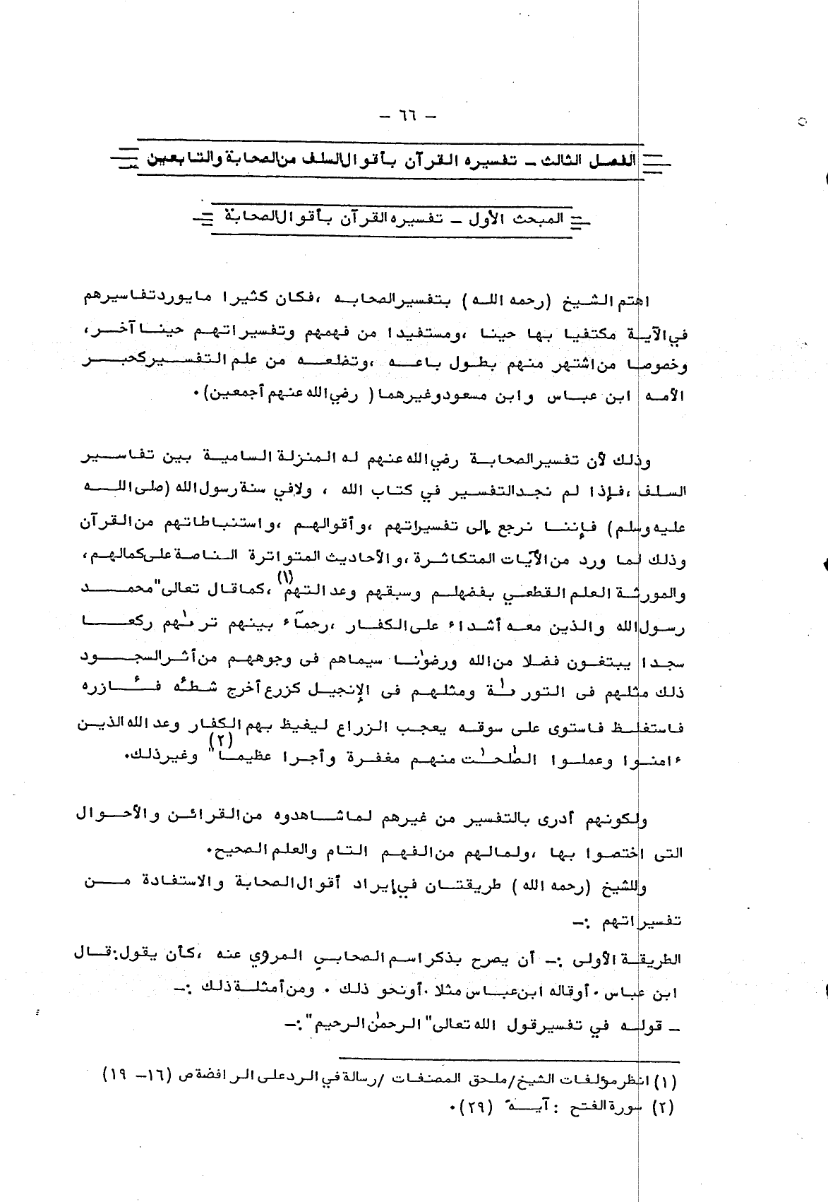 الفصل الثالث: تفسيره القرآن بأقوال السلف من الصحابة والتابعين