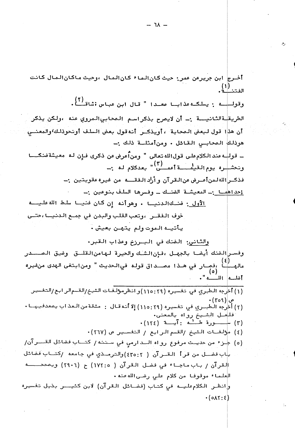 1 أخرجه الطبري في تفسيره "29: 115" وانظر مؤلفات الشيخ/ القسم الرابع/ التفسير ص "359".