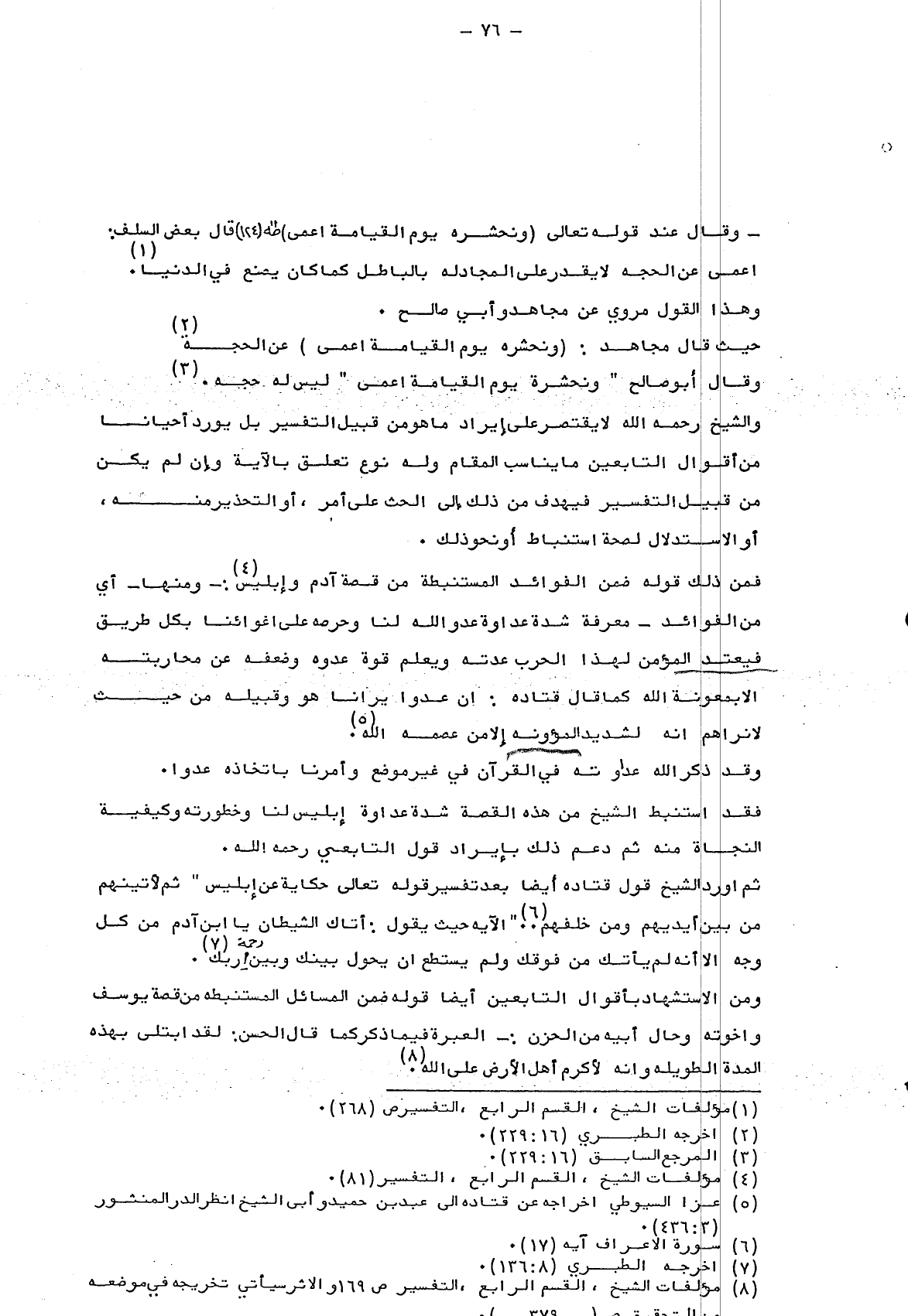 8 سورة مؤلفات الشيخ، القسم الرابع، التفسير ص 169والأثر سيأتي تخريجه في موضعه من التحقيق ص "379".