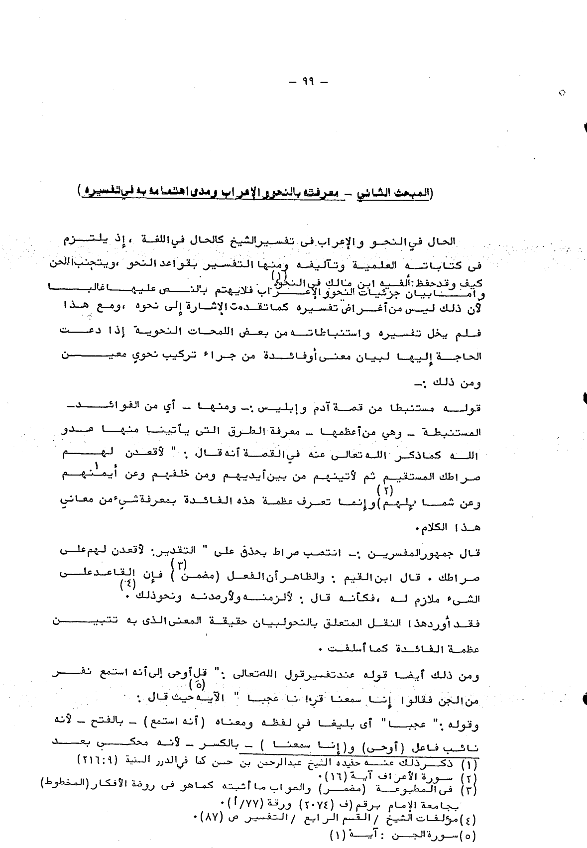 ومن ذلك أيضاً قوله عند تفسير قول الله تعالى: {قُلْ أُوحِيَ إِلَيَّ أَنَّهُ اسْتَمَعَ نَفَرٌ مِنَ الْجِنِّ فَقَالُوا إِنَّا سَمِعْنَا قُرْآناً عَجَباً} الآية5 حيث قال: