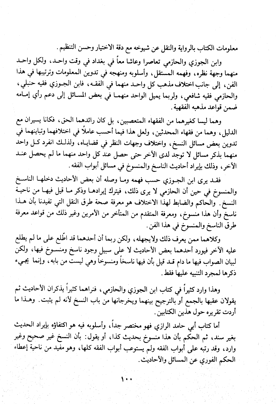 وهذا وارد كثيرًا في كتاب ابن الجوزي والحازمي، فنراهما كثيرًا يذكران الأحاديث ثم يقولان عقبها بالجمع أو بالترجيح بينهما ويخرجانها من باب النسخ لأنه لم يثبت. وهذا ما أردت تقريره حول هذين الكتابين.