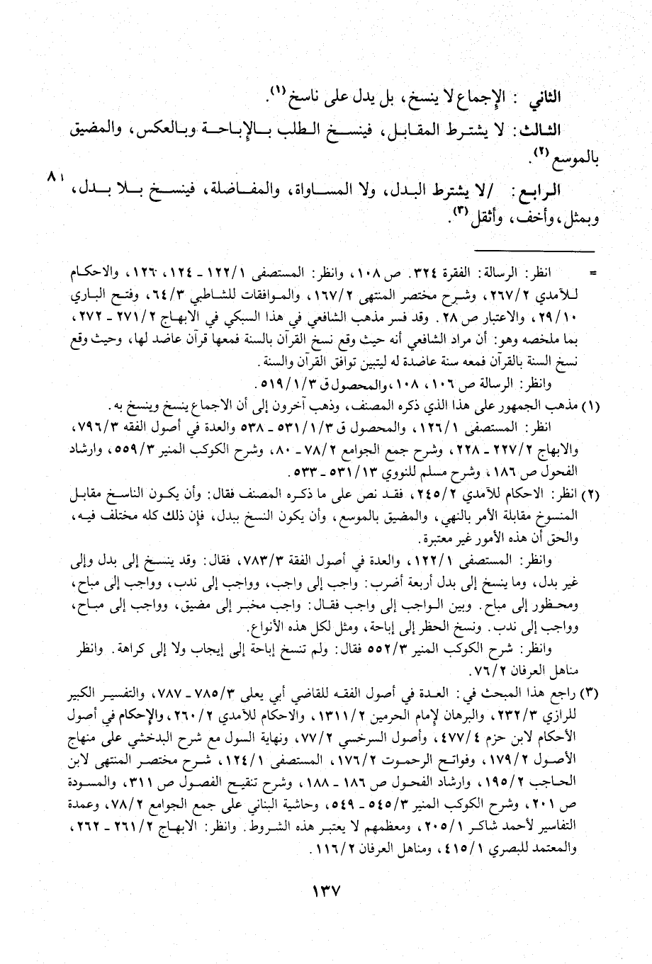انظر: المستصفى 1/ 126، والمحصول ق 3/ 1/ 531 - 538 والعدة في أصول الفقه 3/ 796، والابهاج 2/ 227 - 228، وشرح جمع الجوامع 2/ 78 - 80، وشرح الكوكب المنير 3/ 559، وإرشاد الفحول ص 186، وشرح مسلم للنووي 13/ 531 - 533.