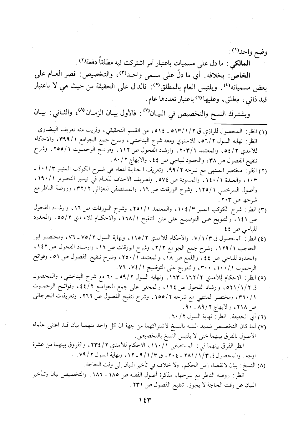 (¬3) انظر: شرح الكوكب المنير 3/ 104، والمعتمد 1/ 251، وشرح الورقات ص 16، وإرشاد الفحول ص 141، والتلويح على التوضيح على متن التنقيح 1/ 168، والأحكام للآمدي 2/ 55، والحدود للباجي ص 44.