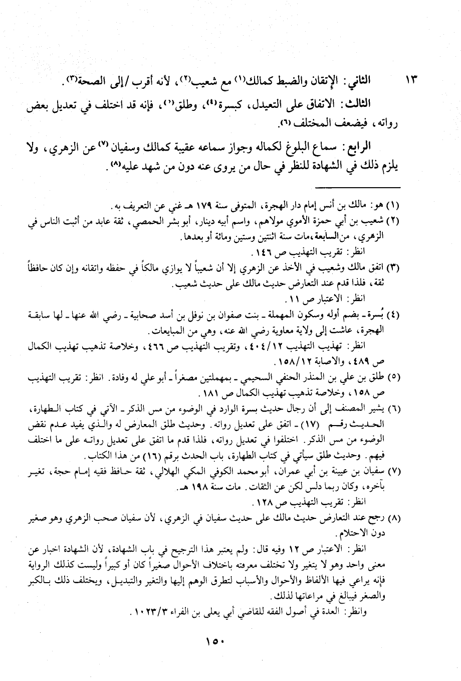 (¬8) رجح عند التعارض حديث مالك على حديث سفيان في الزُّهْرِيّ, لأن سفيان صحب الزُّهْرِيّ وهو صغير دون الاحتلام.