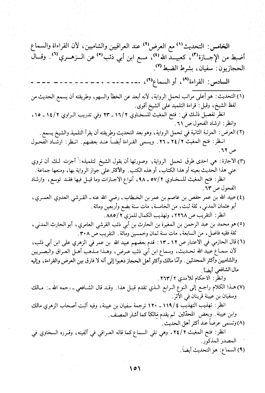 (¬2) العرض: المرتبة الثانية في تحمل الرواية، وهو بعد التحديث وطريقته أن يقرأ التلميذ والشيخ يسمع.