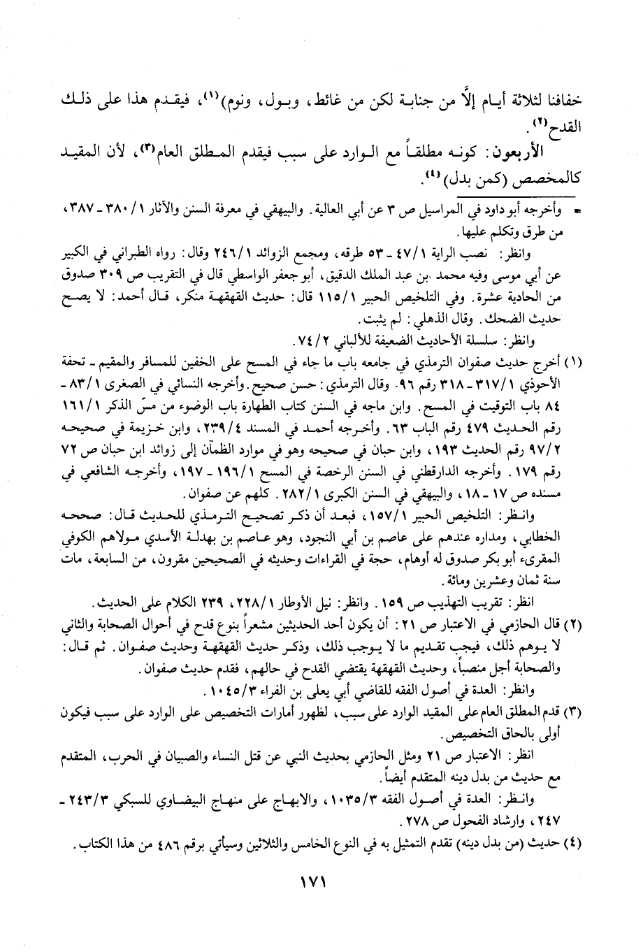 (¬1) أخرج حديث صفوان الترمذي في جامعه باب ما جاء في المسح على الخفين للمسافر والمقيم - تحفة الأحوذي 1/ 317 - 318 رقم 96. وقال الترمذي: حسن صحيح. وأخرجه النسائي في الصغرى 1/ 83 - 84 باب التوقيت في المسح. وابن ماجه في السنن كتاب الطهارة باب الوضوء من مسّ الذكر 1/ 161 رقم الحديث 479 رقم الباب 63. وأخرجه أحمد في المسند 4/ 239، وابن خزيمة في صحيحه 2/ 97 رقم الحديث 193، وابن حبان في صحيحه وهو في موارد الظمآن إلى زوائد ابن حبان ص 72 رقم 179. وأخرجه الدارقطني في السنن الرخصة في المسح 1/ 196 - 197، وأخرجه الشافعي في مسنده ص 17 - 18، والبيهقي في السنن الكبرى 1/ 282. كلهم عن صفوان.