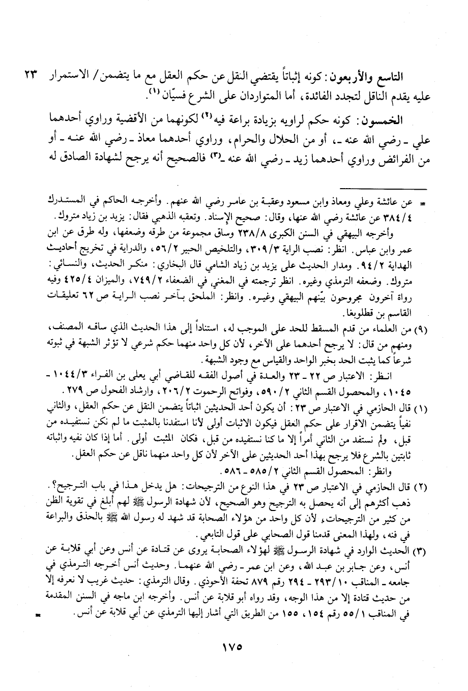 (¬2) قال الحازمي في الاعتبار ص 23: أن يكون أحد الحديثين إثباتًا يتضمن النقل عن حكم العقل، والثاني نفيًا يتضمن الإقرار على حكم العقل فيكون الإثبات أولى لأنا استفدنا بالمثبت ما لم نكن نستفيده من قبل، ولم نستفد من الثاني أمرًا إلا ما كنا نستفيده من قبل، فكان المثبت أولى. أما إذا كان نفيه وإثباته ثابتين بالشرع فلا يرجح بهذا أحد الحديثين على الآخر لأن كل واحد منهما ناقل عن حكم العقل.