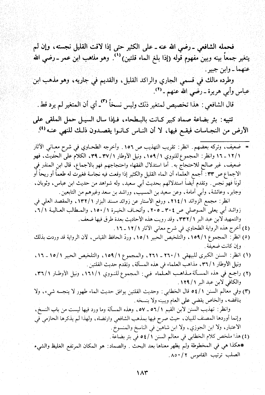 (¬3) انظر: السنن الكبرى للبيهقي 1/ 260 - 261، والمجموع 1/ 159، والتلخيص الحبير 1/ 15 - 16، ونيل الأوطار 1/ 36، مذاهب العلماء في هذه المسألة، وتقدم حديث القلتين.