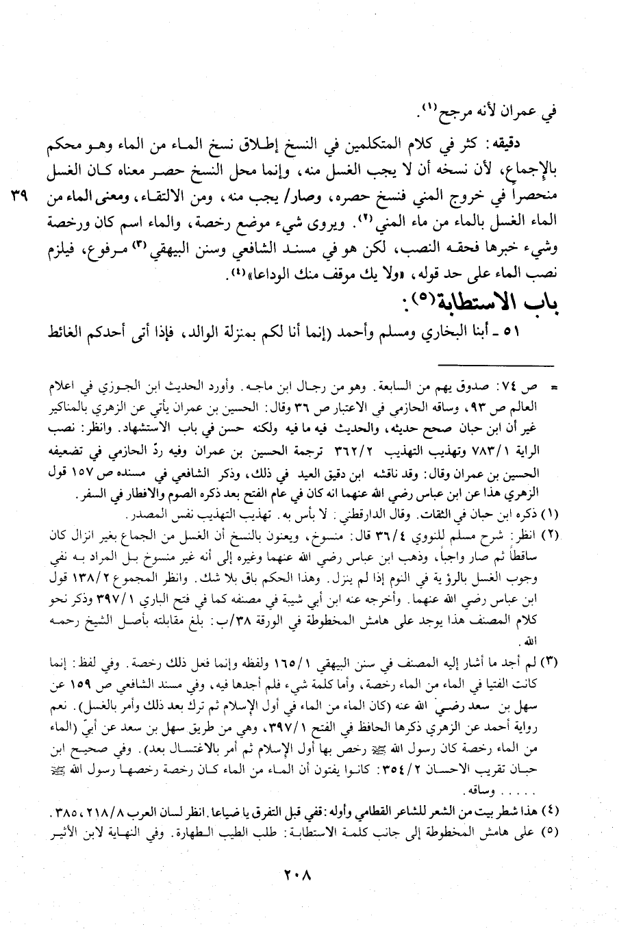 (¬5) على هامش المخطوطة إلى جانب كلمة الاستطابة: طلب الطيب الطهارة. وفي النهاية لابن الأثير