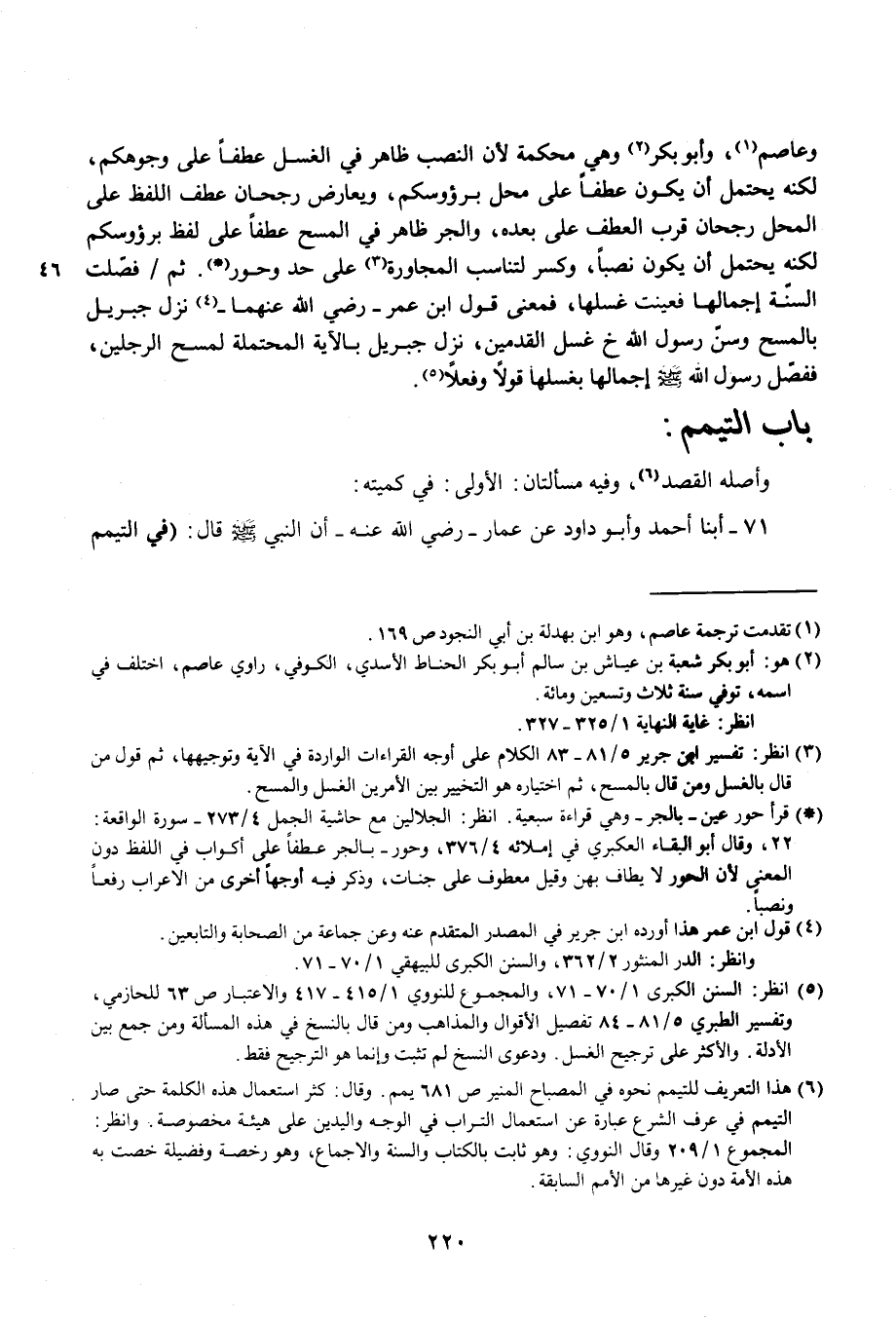 (¬3) انظر: تفسير ابن جرير 5/ 81 - 83 الكلام على أوجه القراءات الواردة في الآية وتوجيهها، ثم قول من قال بالغسل ومن قال بالمسح، ثم اختياره هو التخيير بين الأمرين الغسل والمسح.